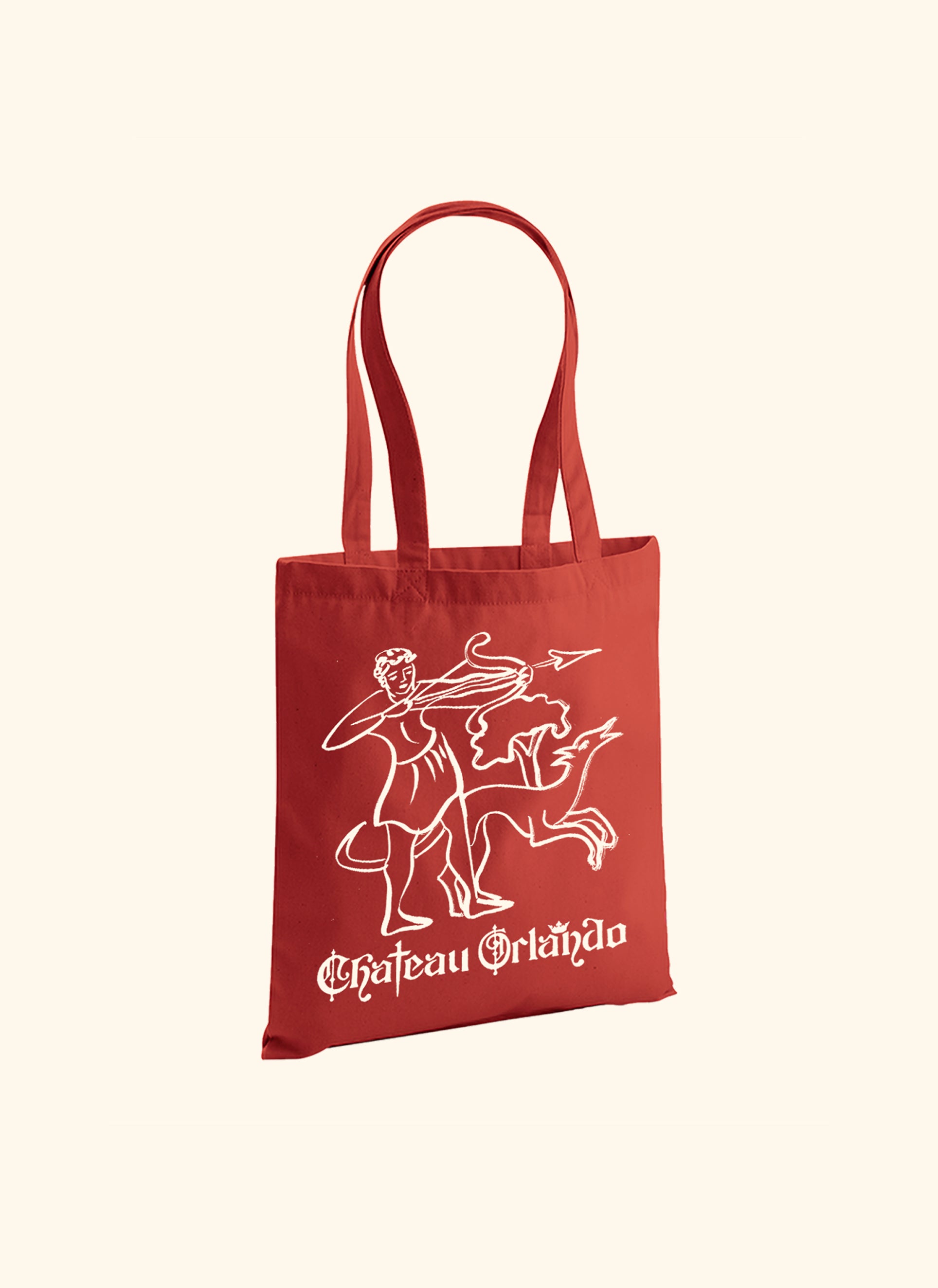 Printed cotton book bag with medieval archer design