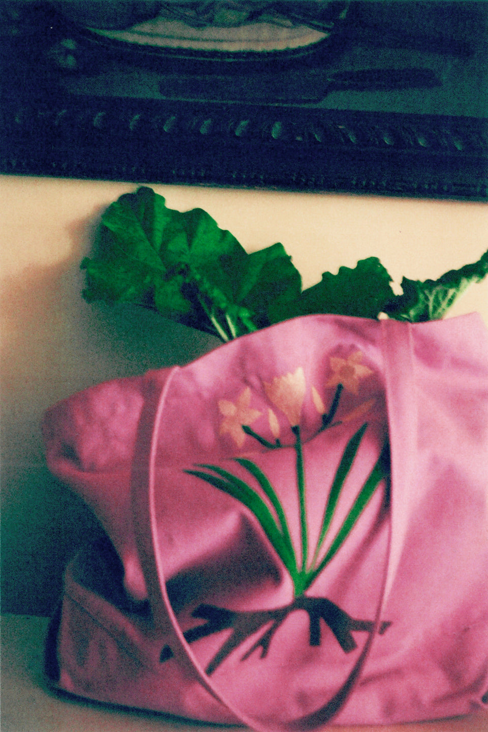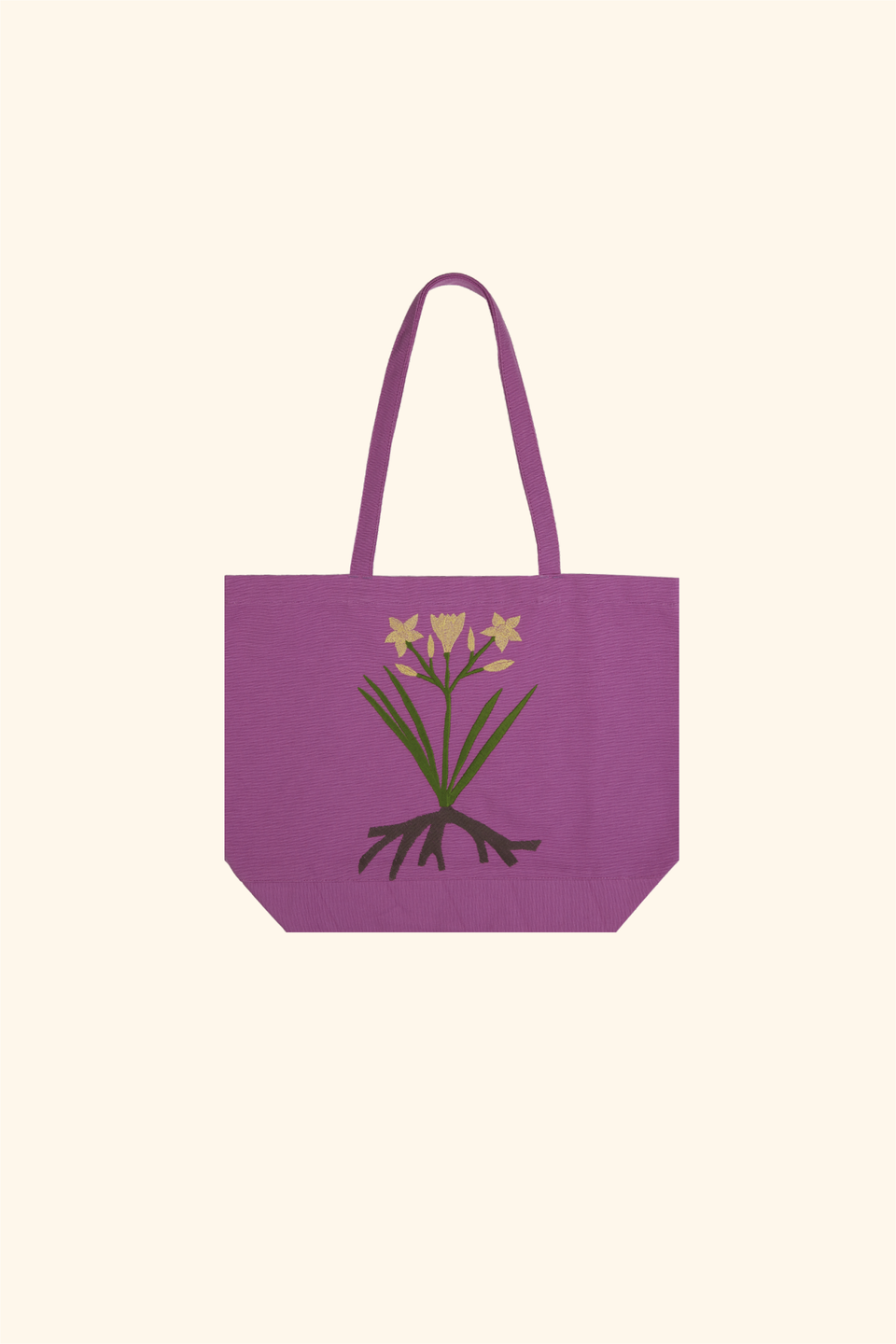 Embroidered and printed cotton canvas work bag with narcissus design