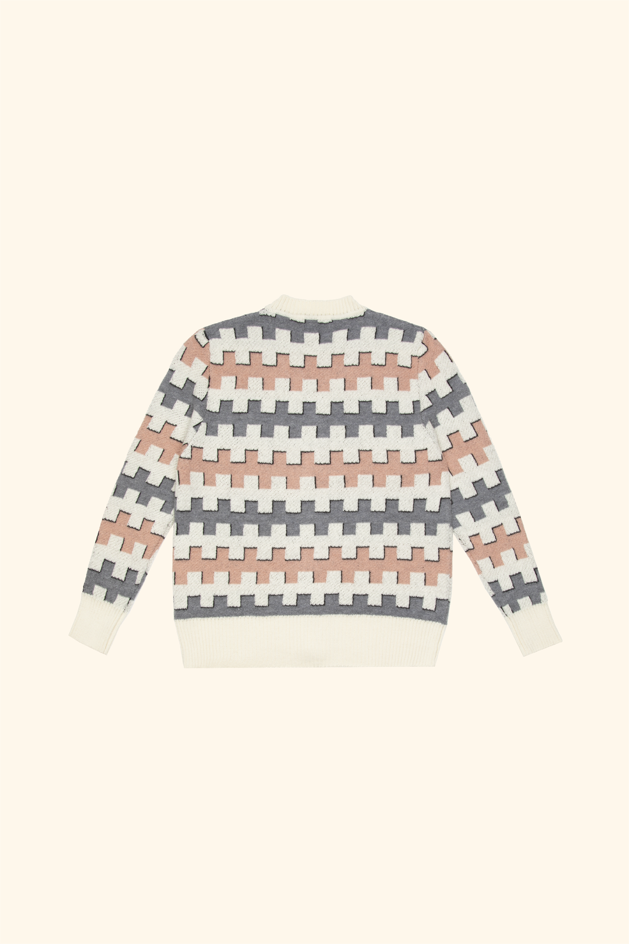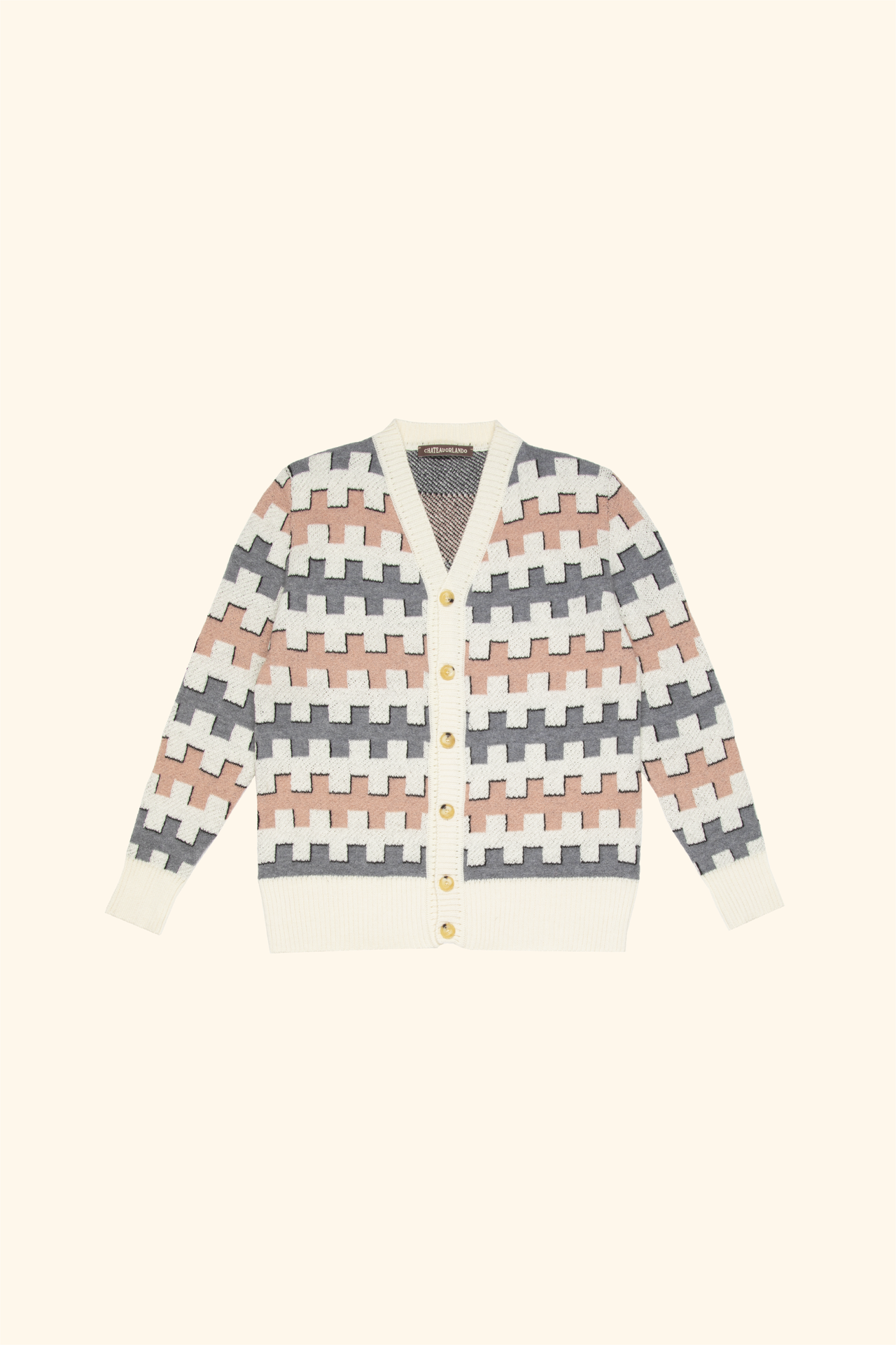 Wool jacquard cardigan with design inspired by the architecture of medieval English castles