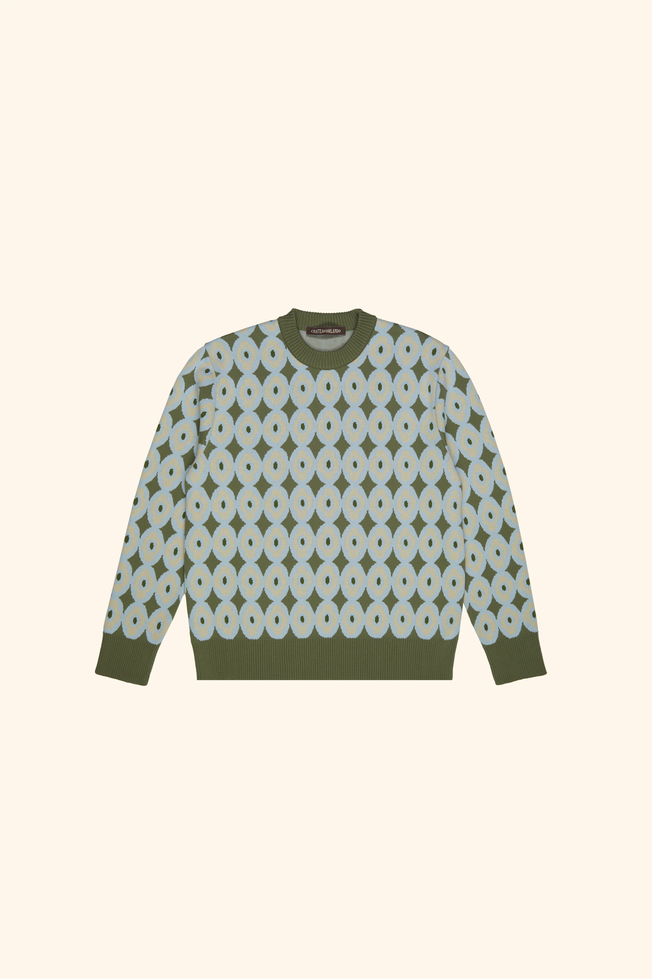 Cotton jacquard crewneck sweater with design inspired by an antique wallpaper fragment
