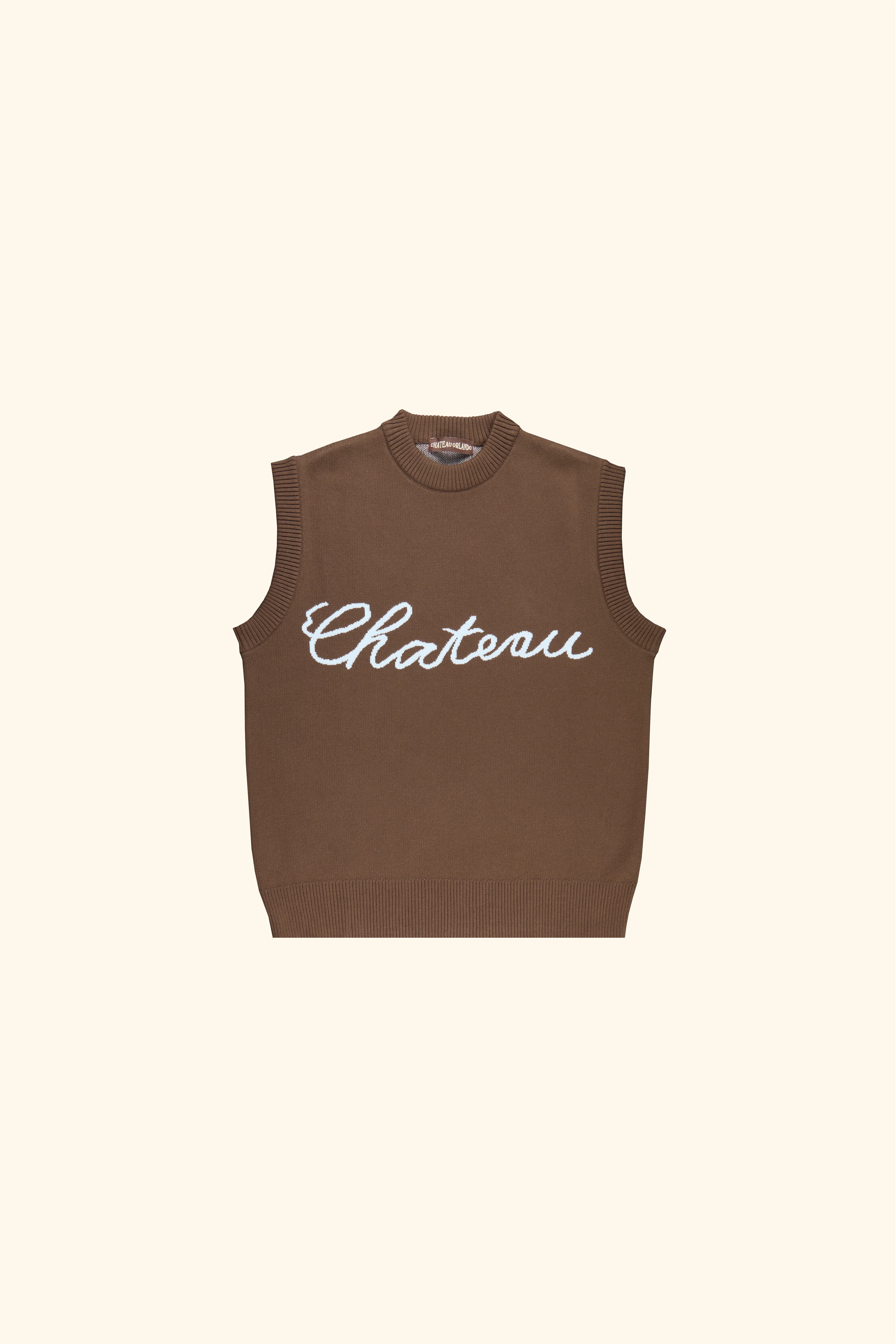 Cotton jacquard crewneck vest with design inspired by vintage souvenir sweaters