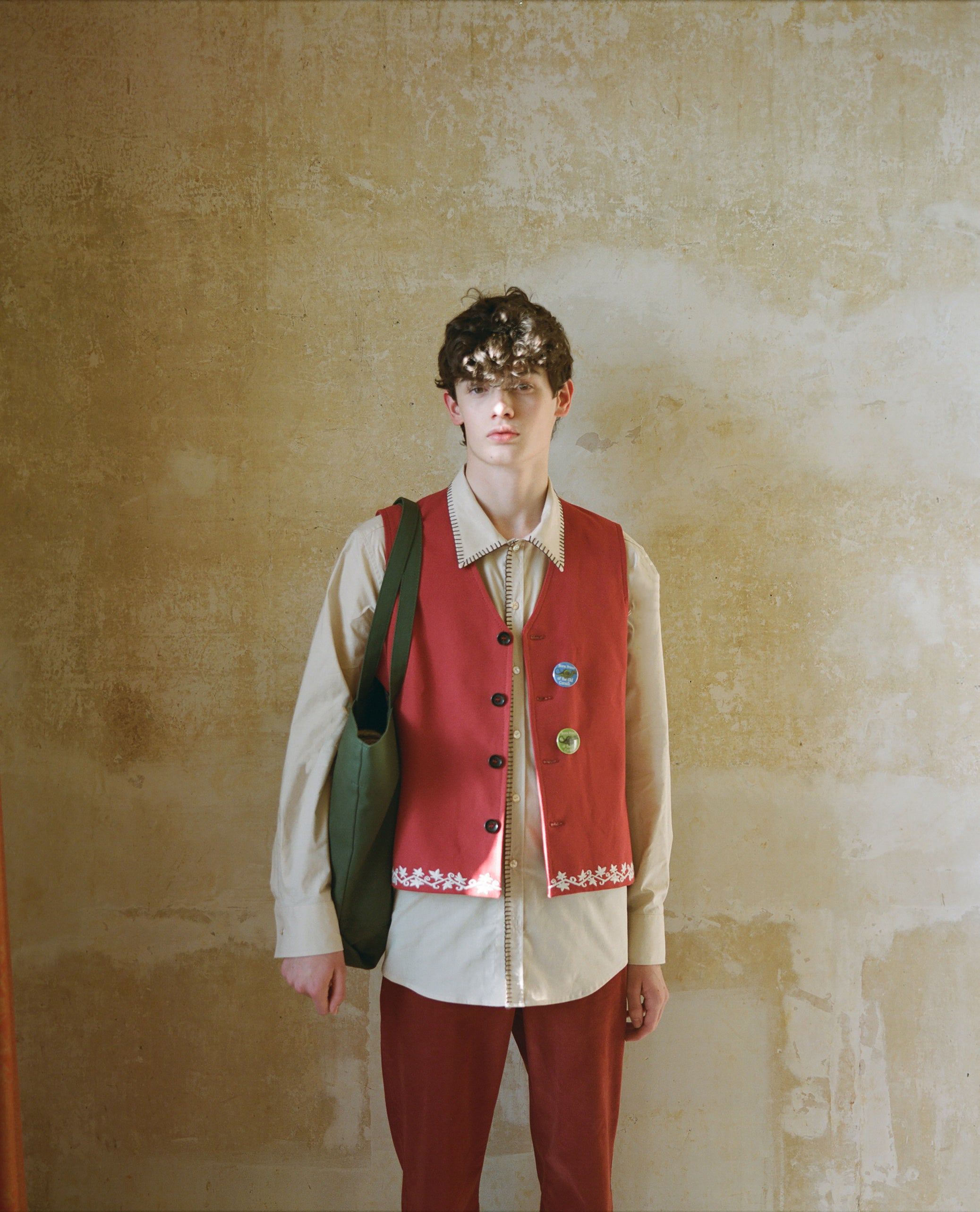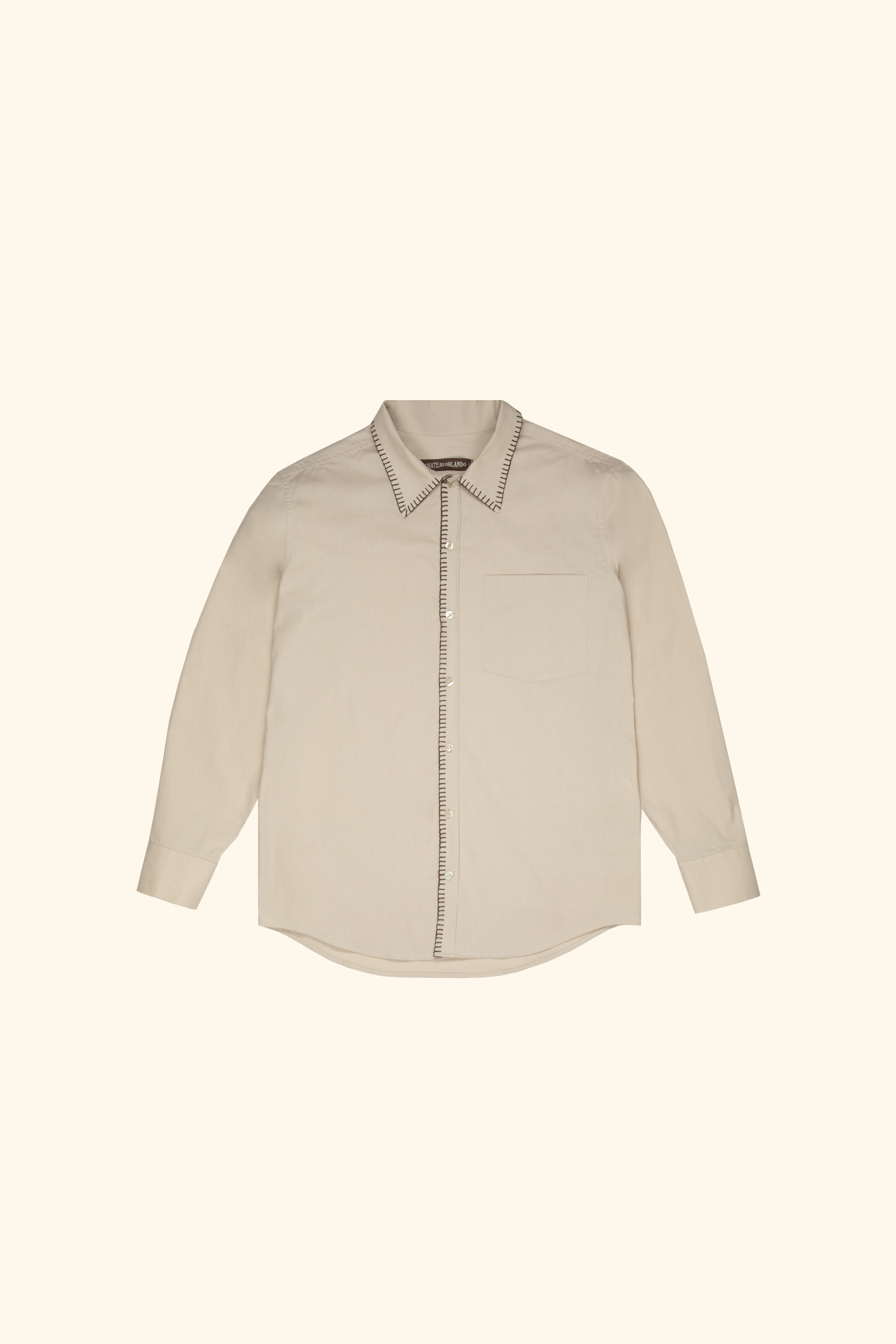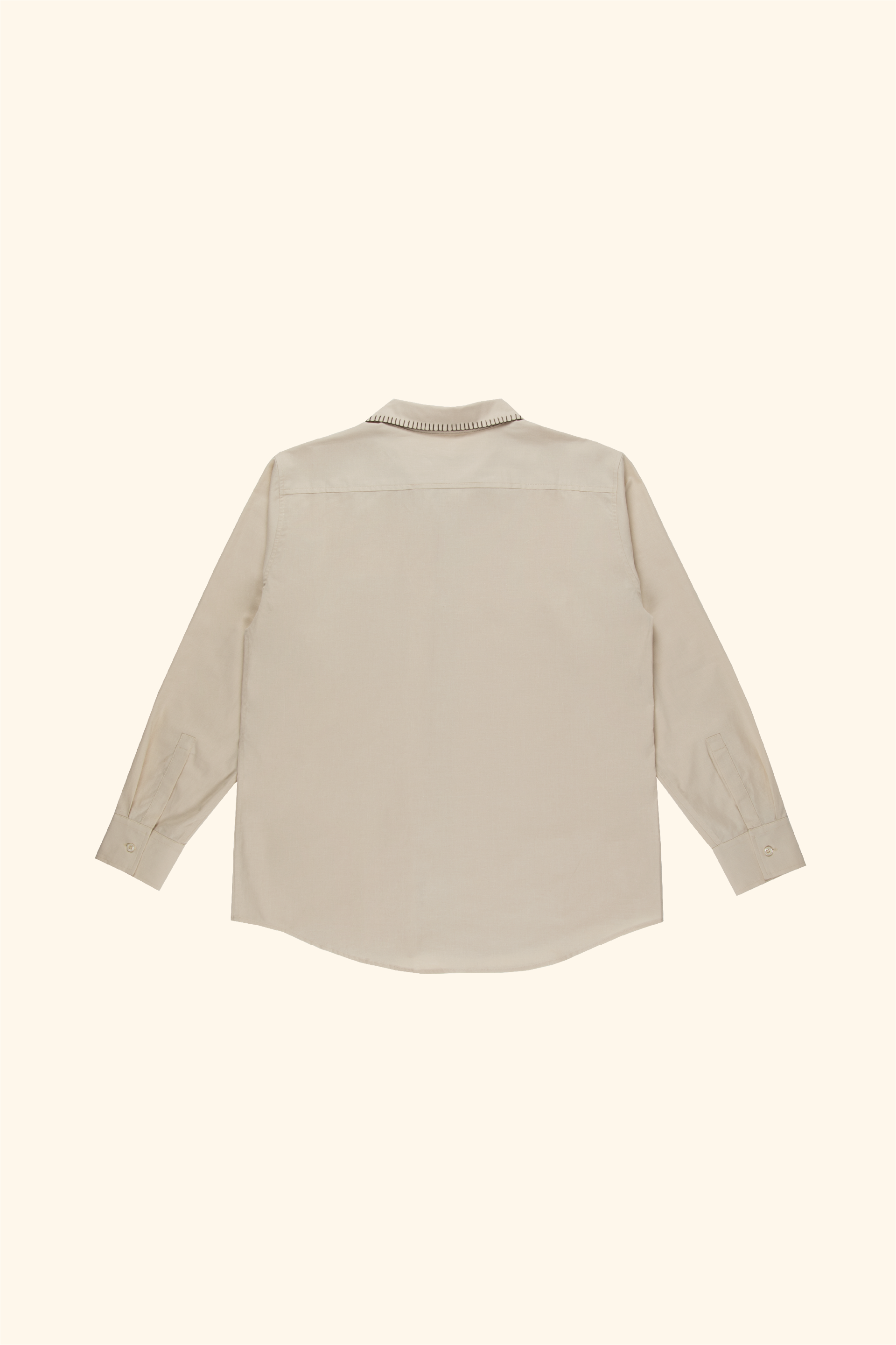 Long sleeved cotton shirt with blanket stitch detail on the collar and placket