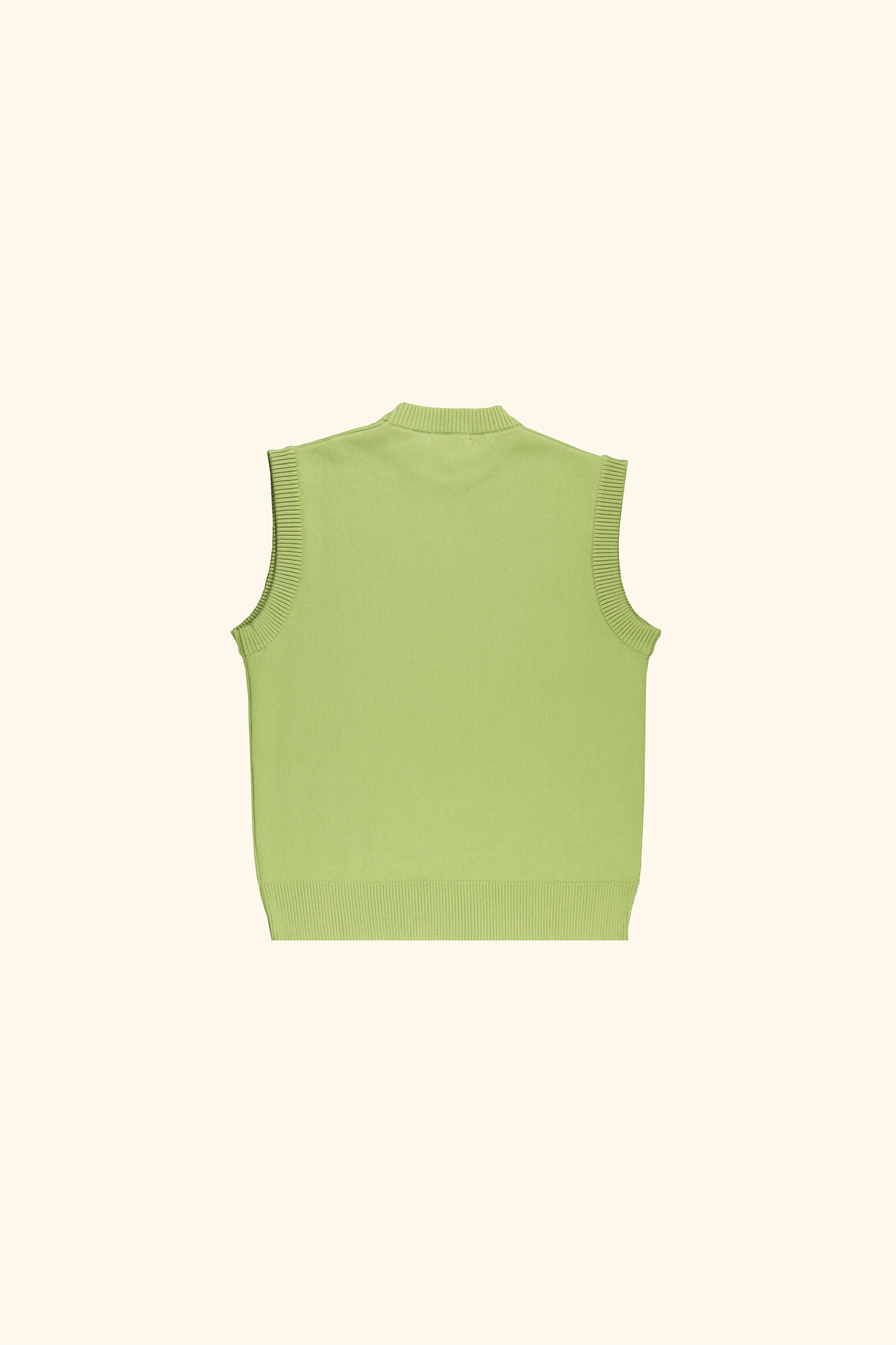 Cotton jacquard crewneck vest with design inspired by vintage souvenir sweaters