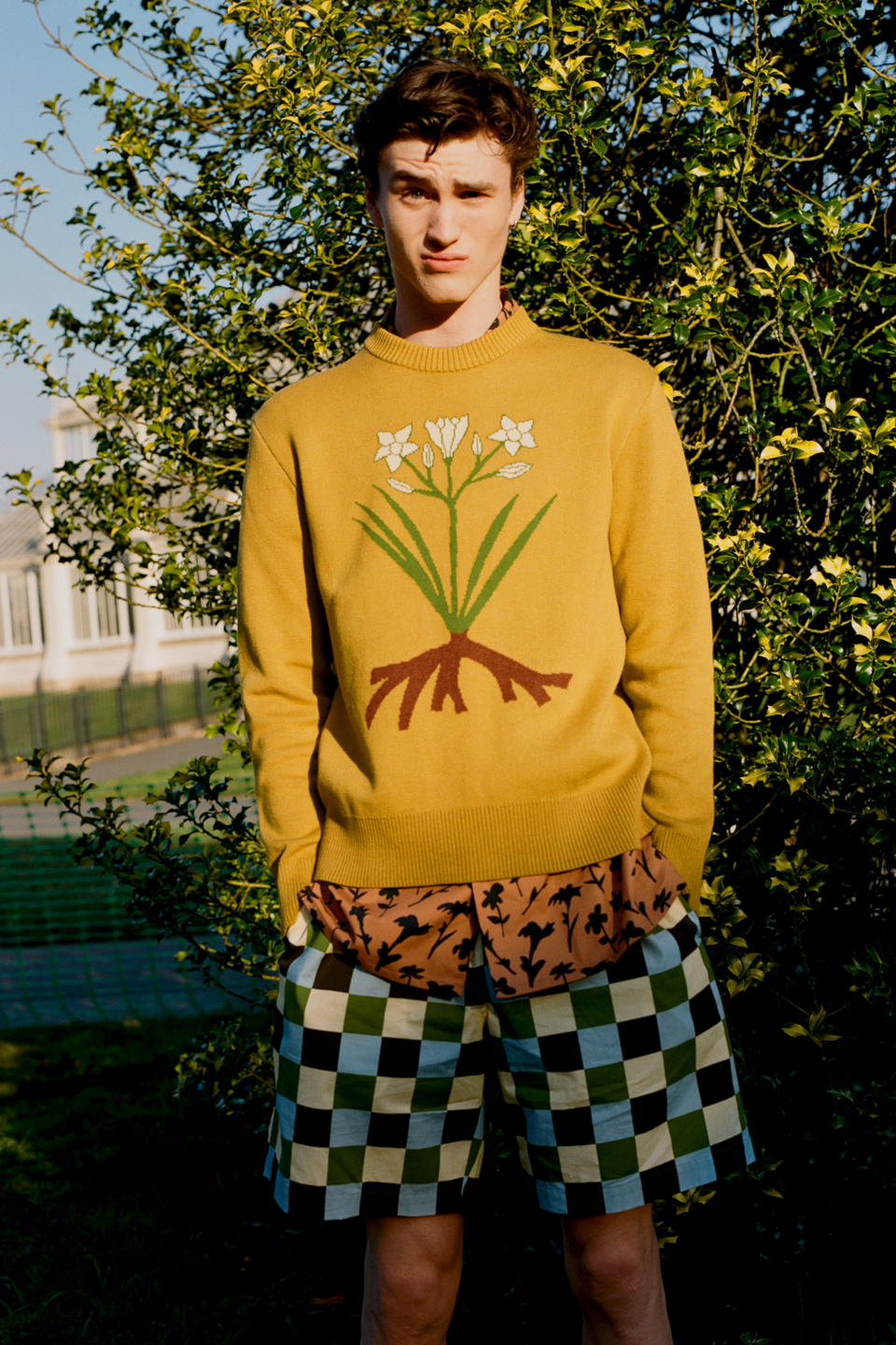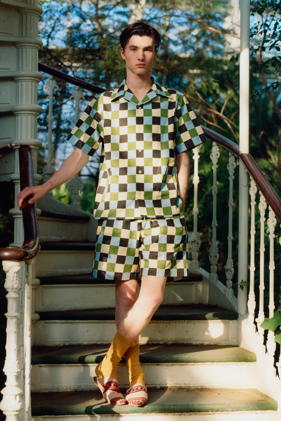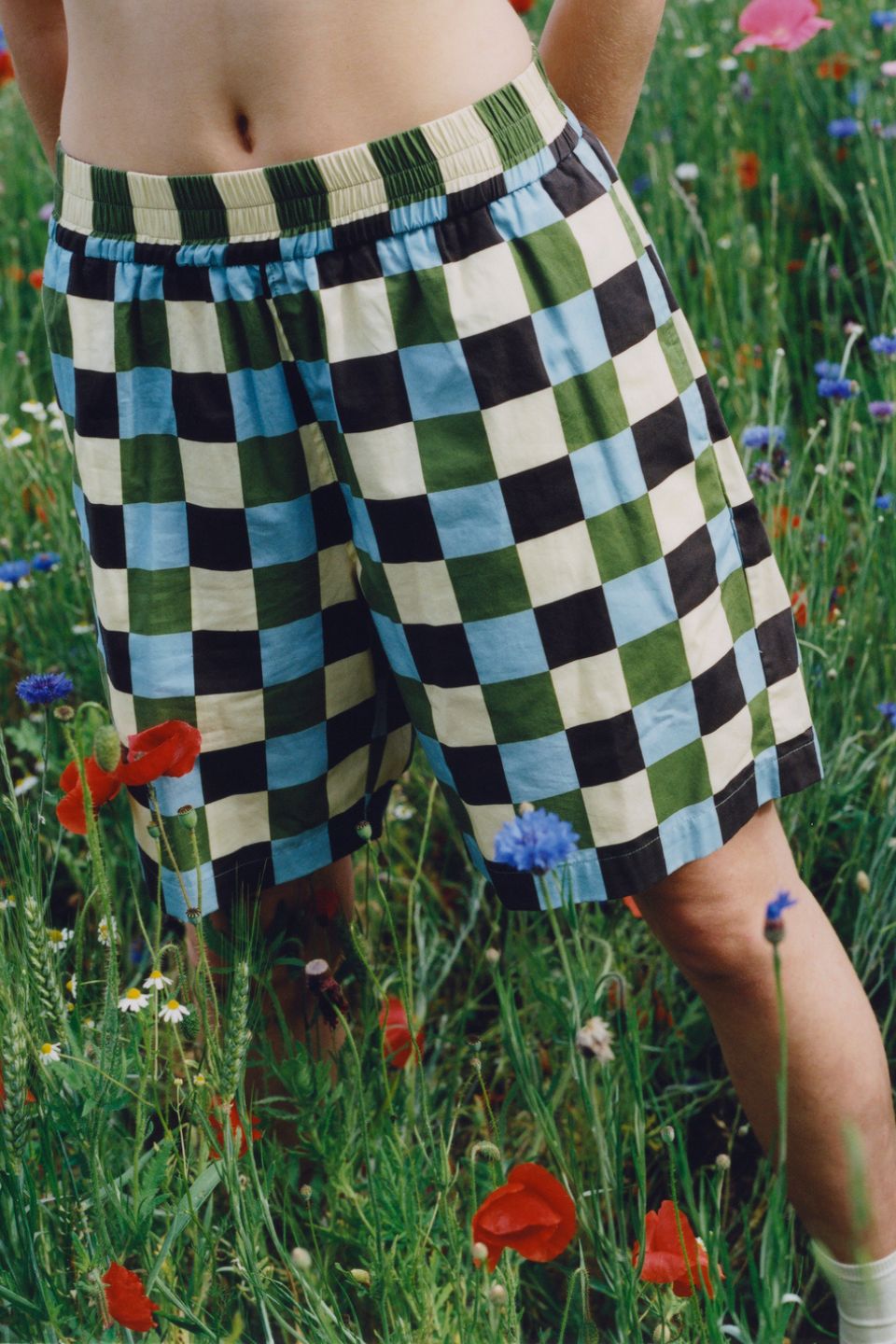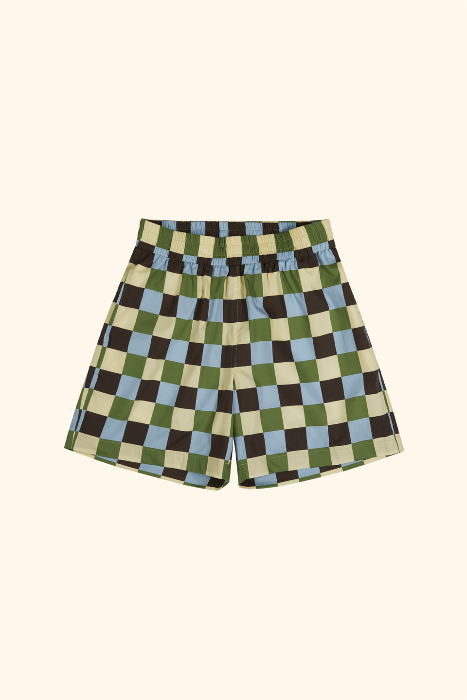 Printed cotton poplin shorts with checkerboard design