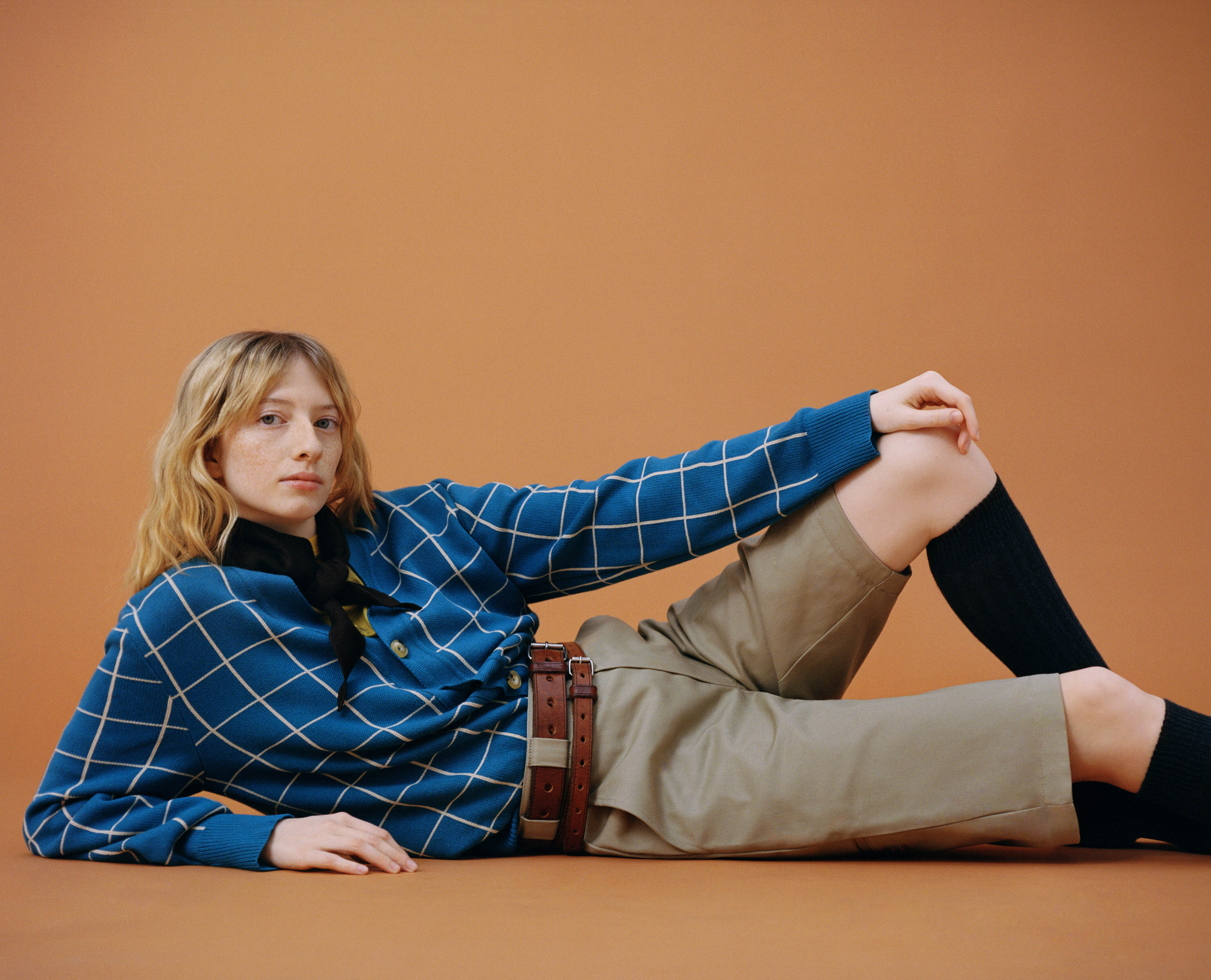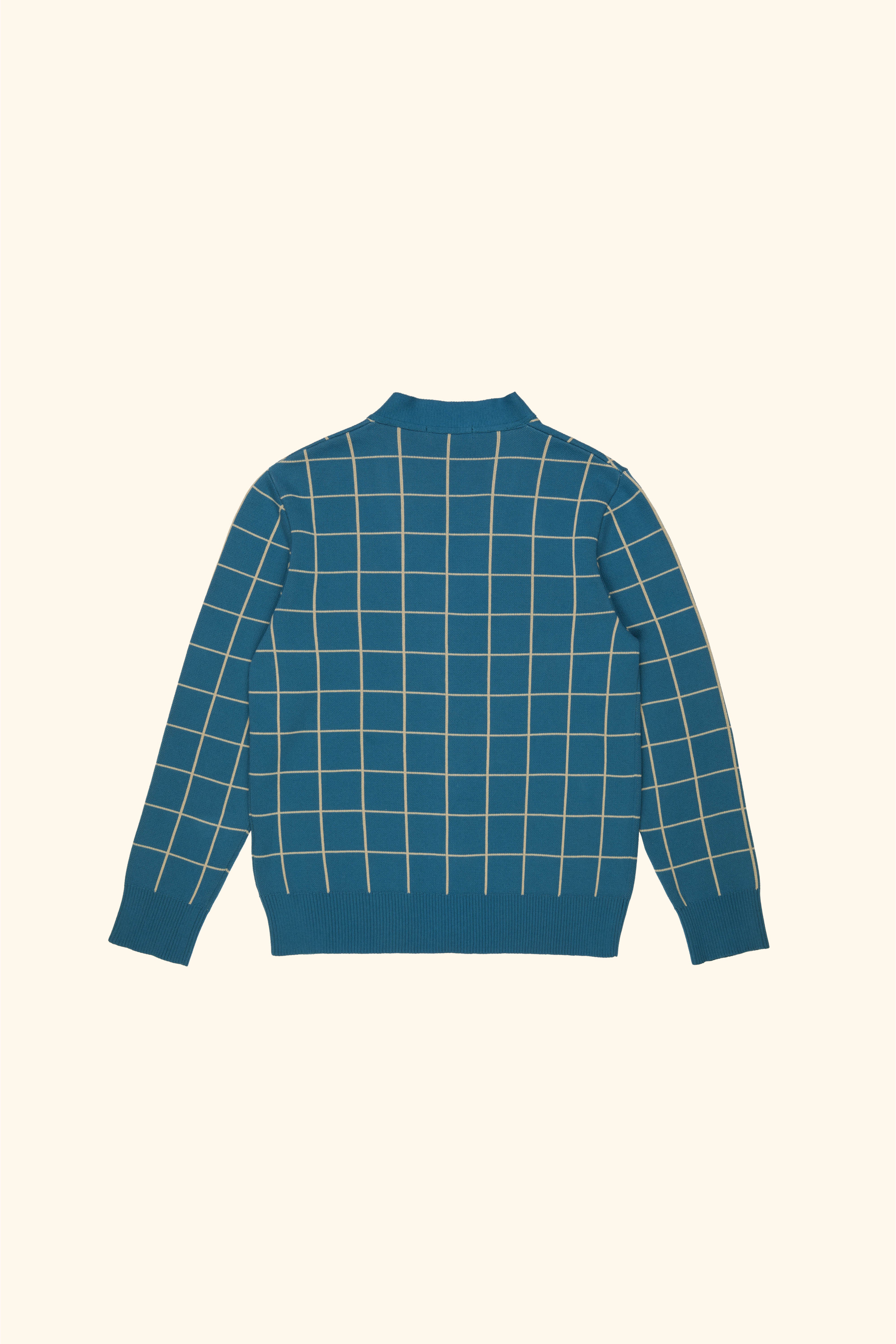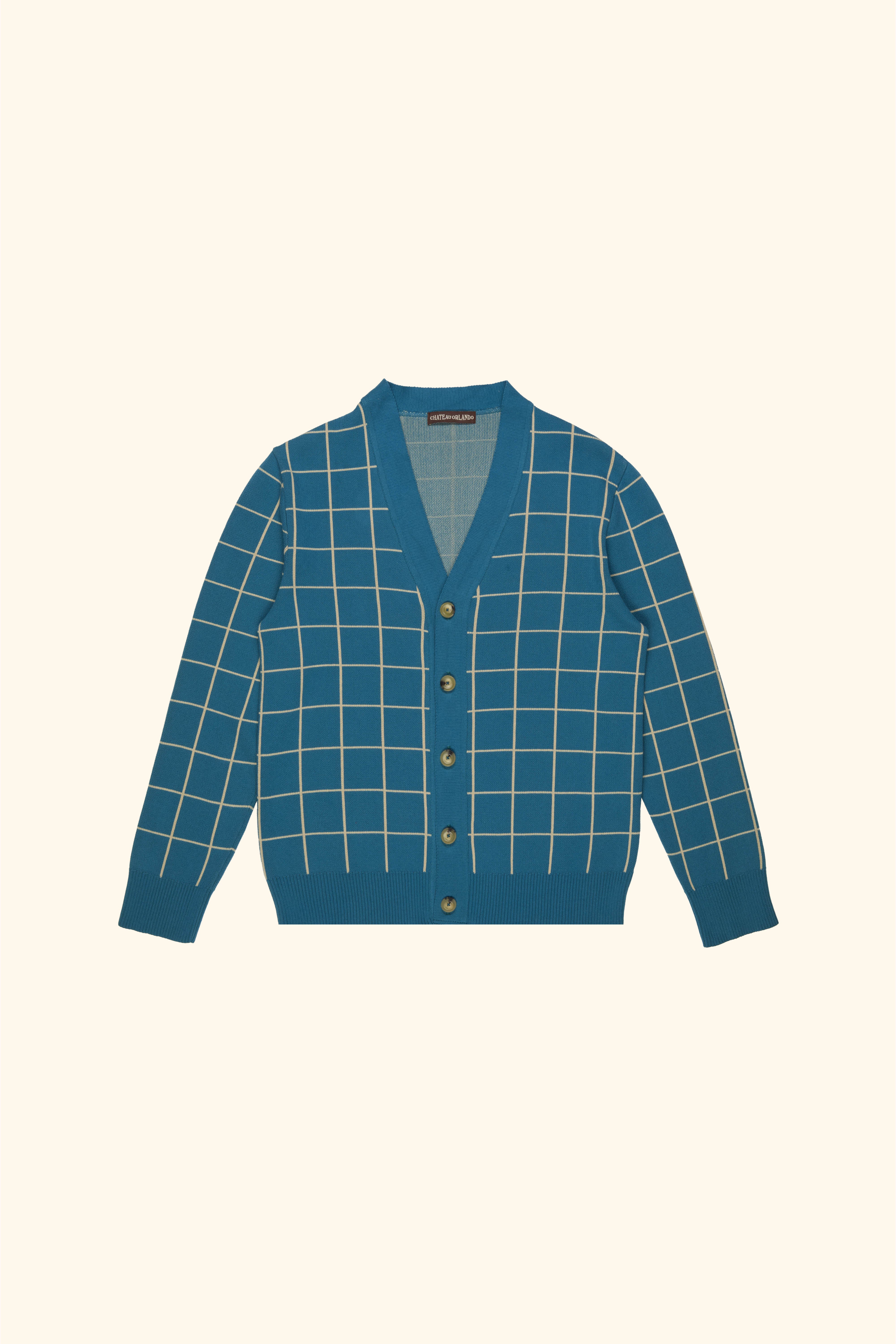 Cotton jacquard cardigan with design inspired by a 1970s vest from Luke's knitwear collection