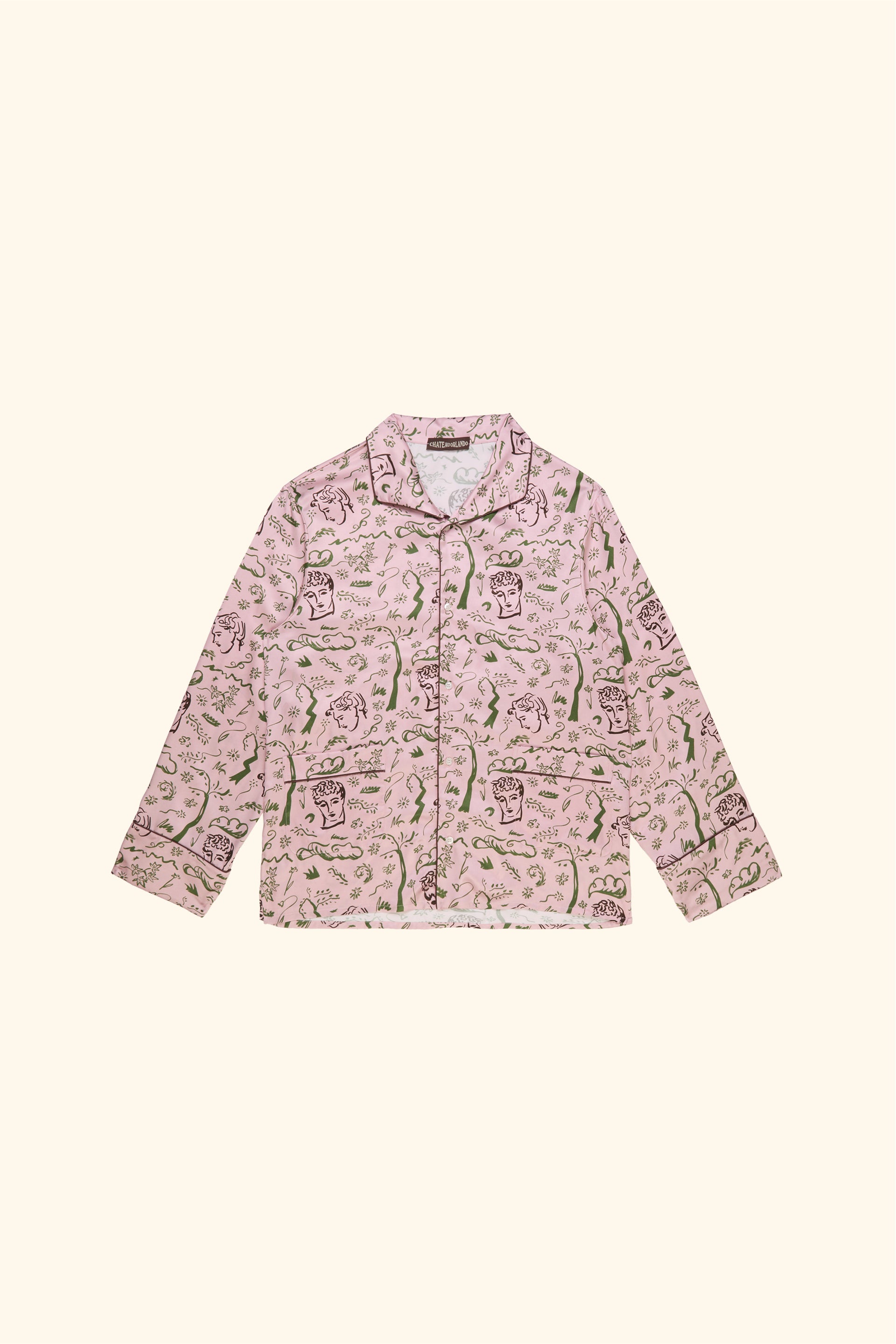 Printed cotton long-sleeved pyjama shirt with twilight woodland design inspired by the poem Endymion by John Keats