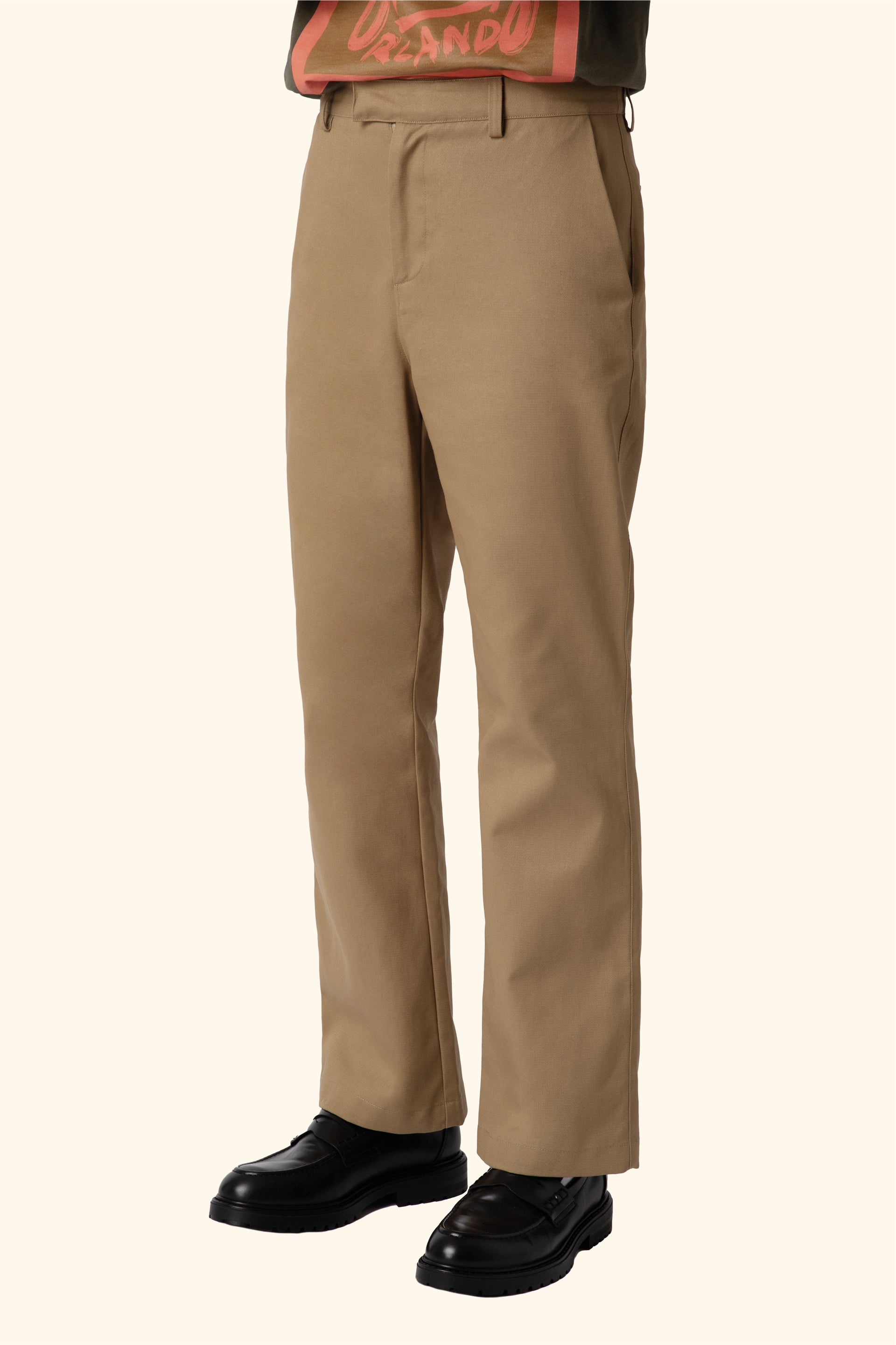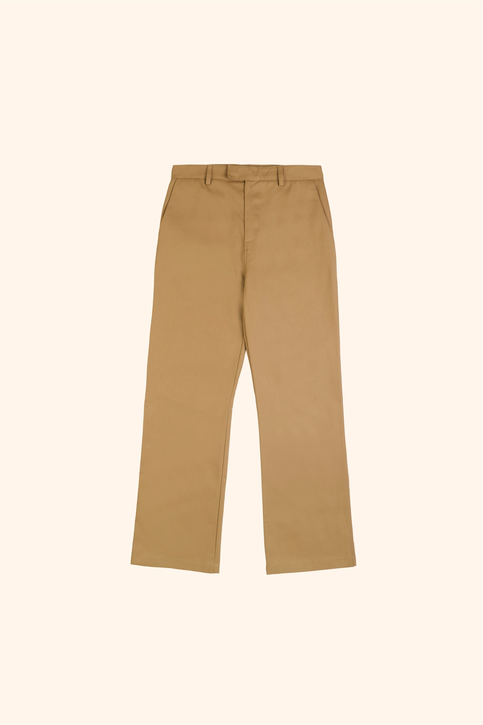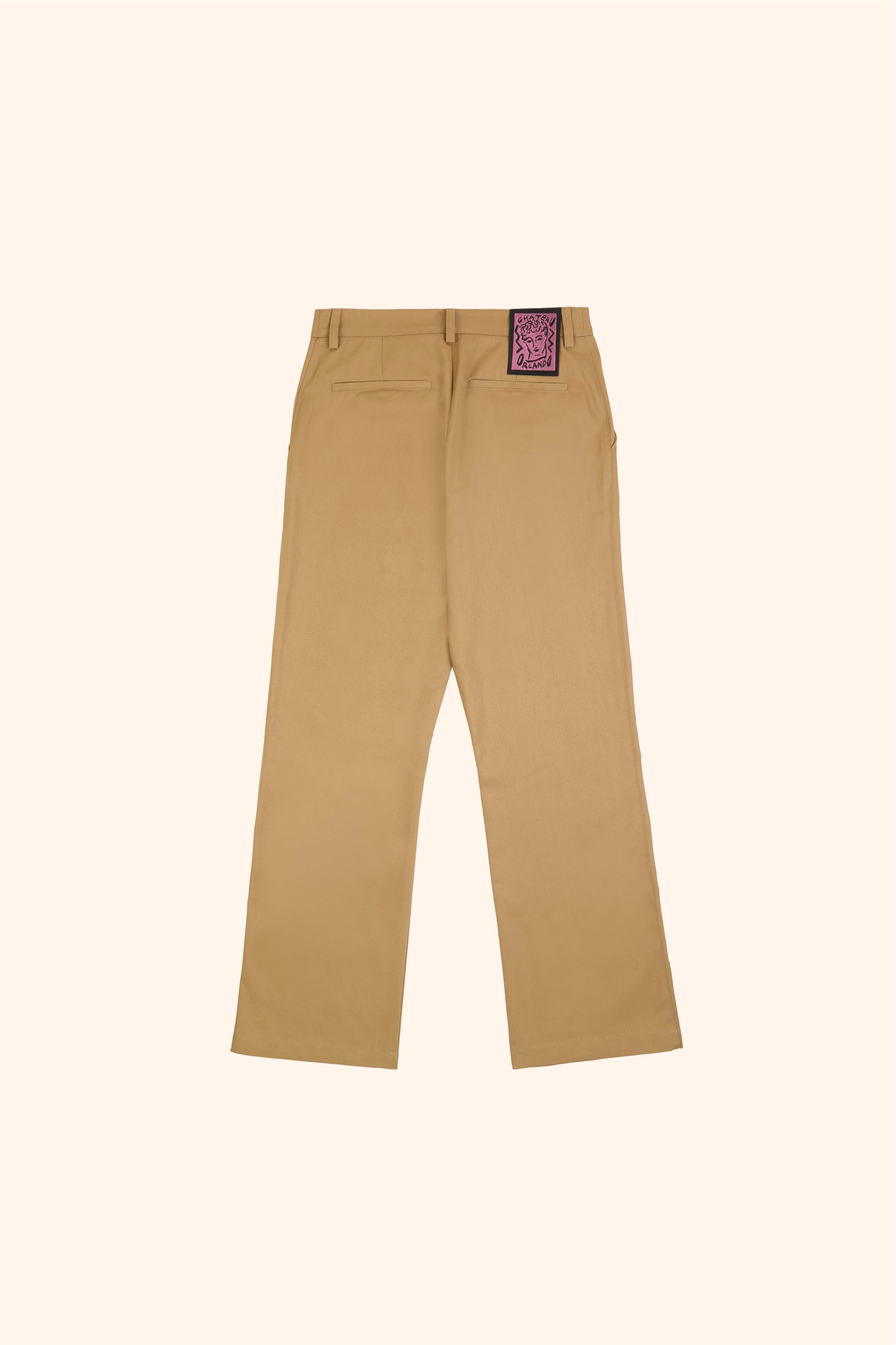 Cotton drill trousers with a slight flare at the hem. A Chateau Orlando Pan patch decorates the back of the waistband