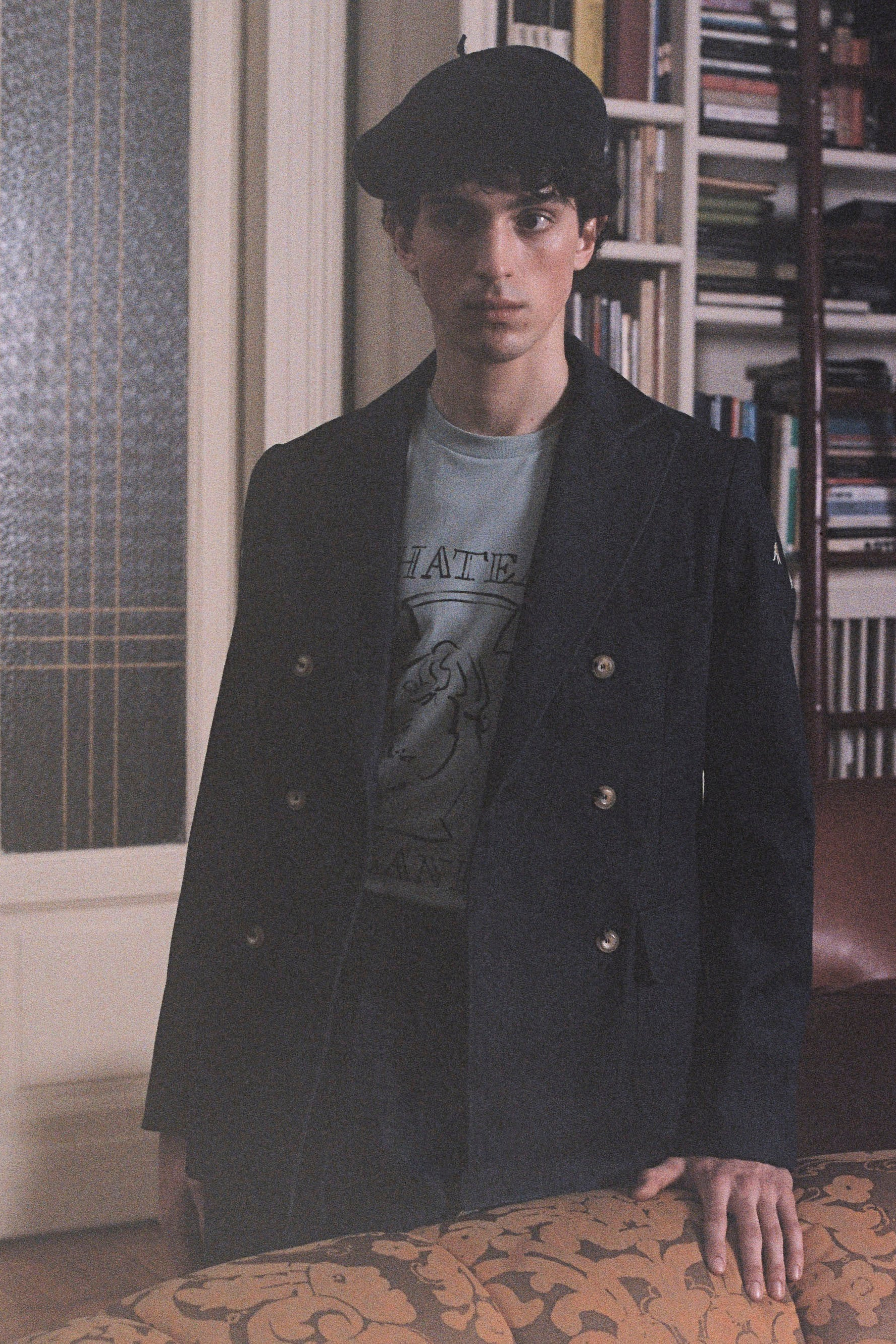 Our spring/summer 2025 denim is a raw 100% cotton denim that has been lightly washed for a worn look. The fit is relaxed, and takes its inspiration from a vintage blazer in Luke's collection