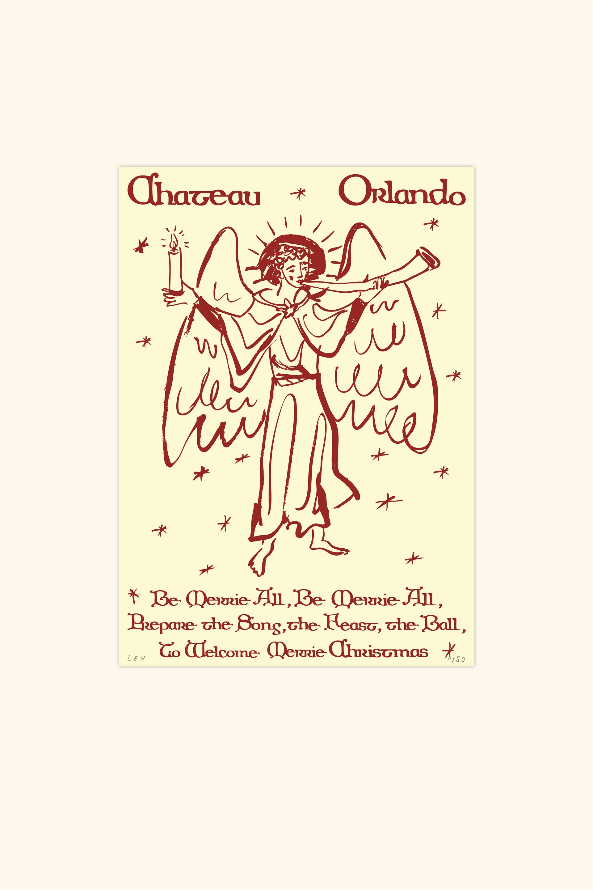 Poster with heralding Christmas angel design inspired by medieval illustrations