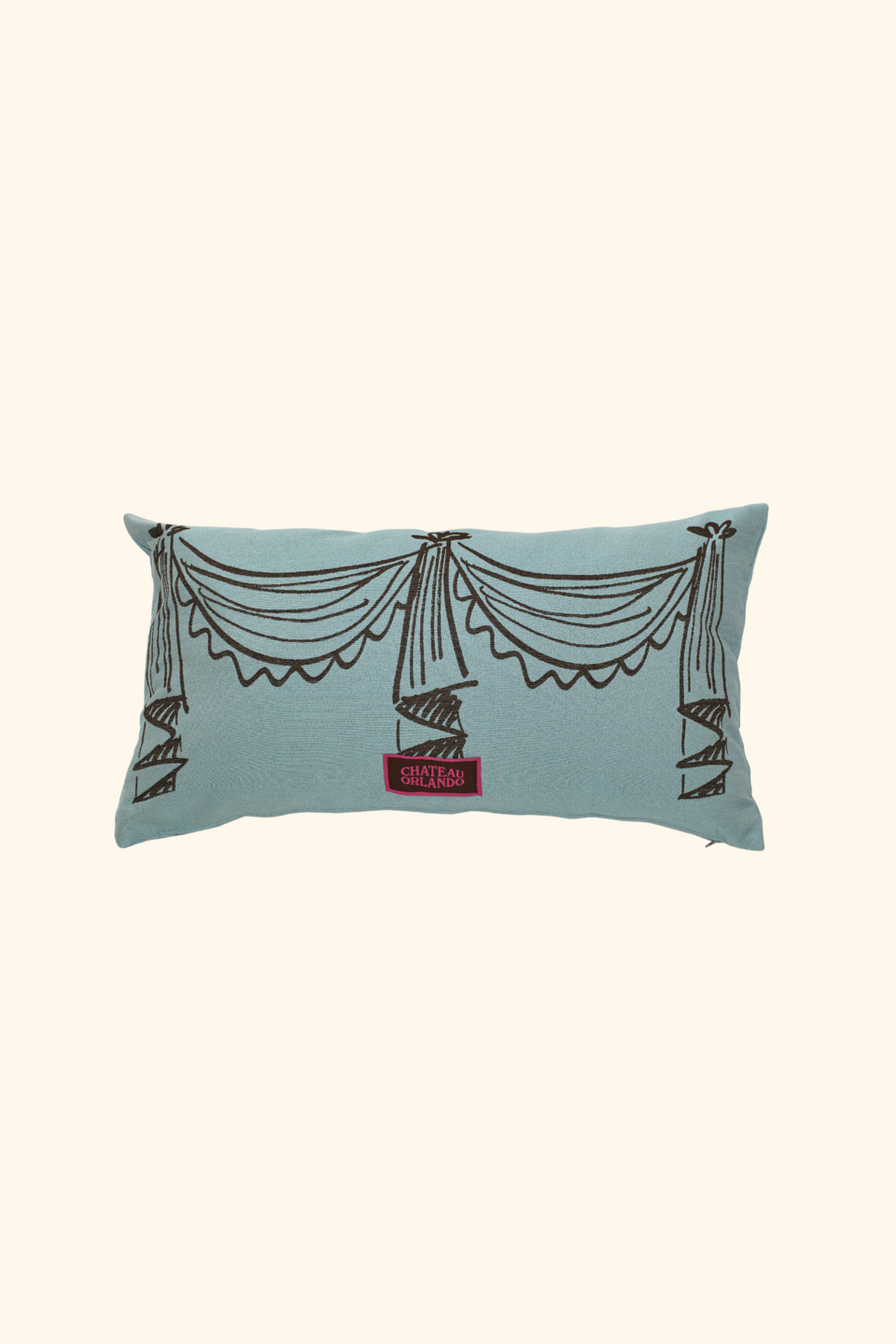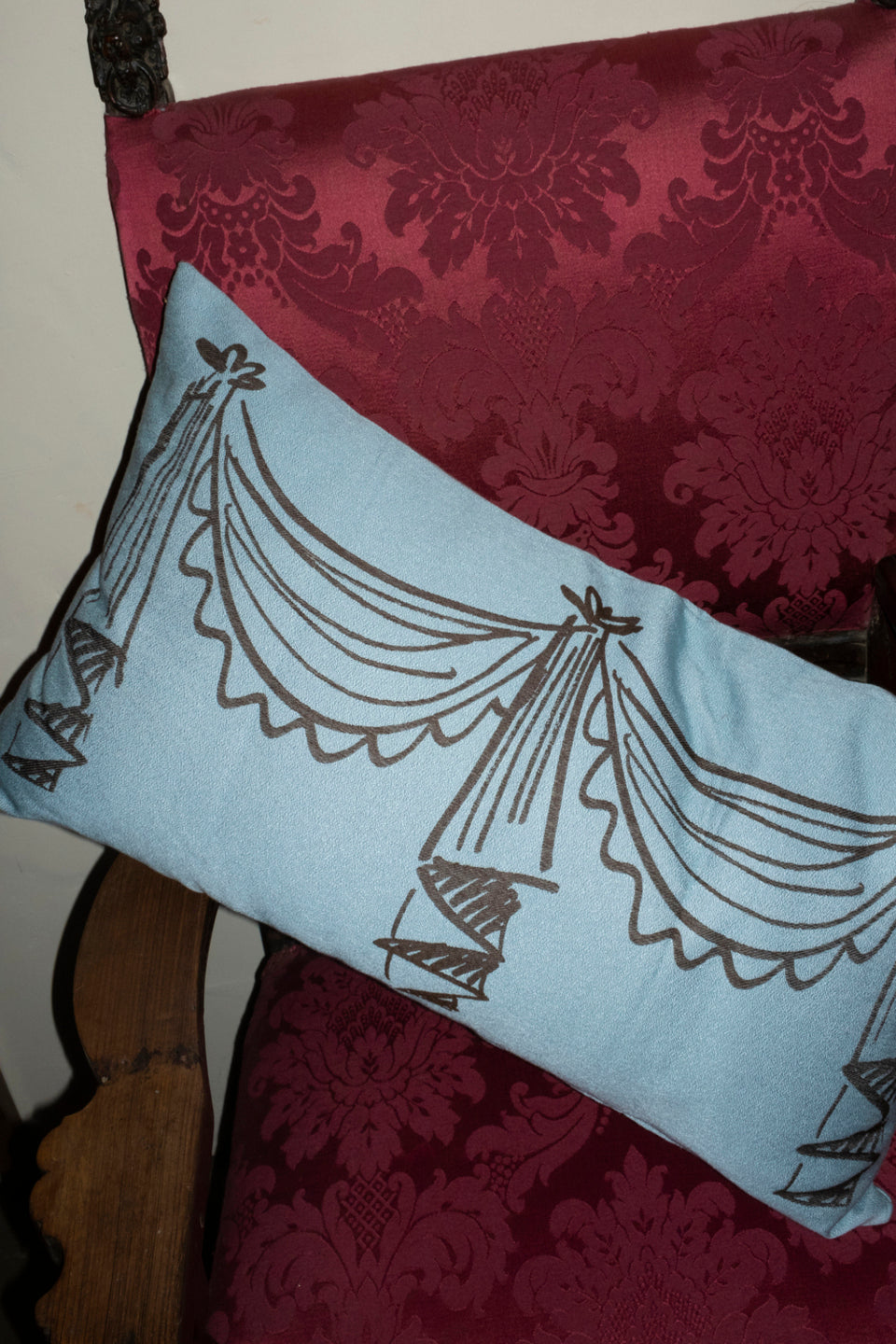 Jacquard cushion cover with design inspired by English country house curtain swags
