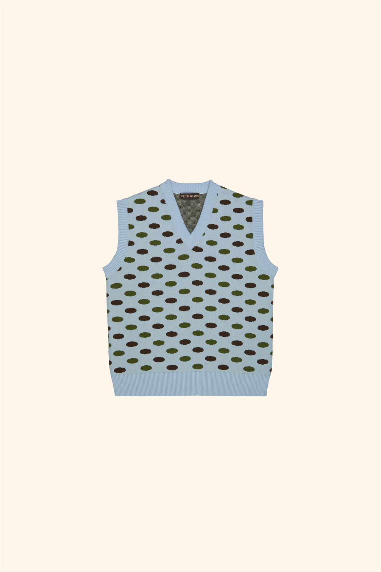 Cotton jacquard V-neck vest with design inspired by an antique wallpaper fragment