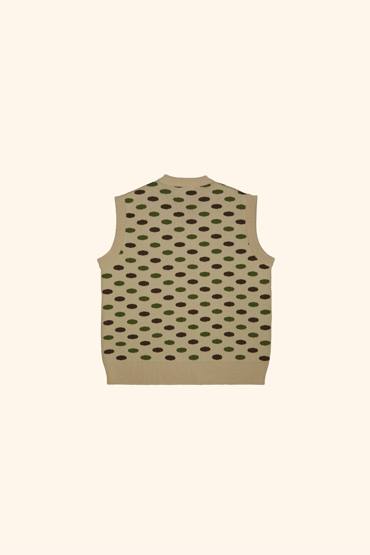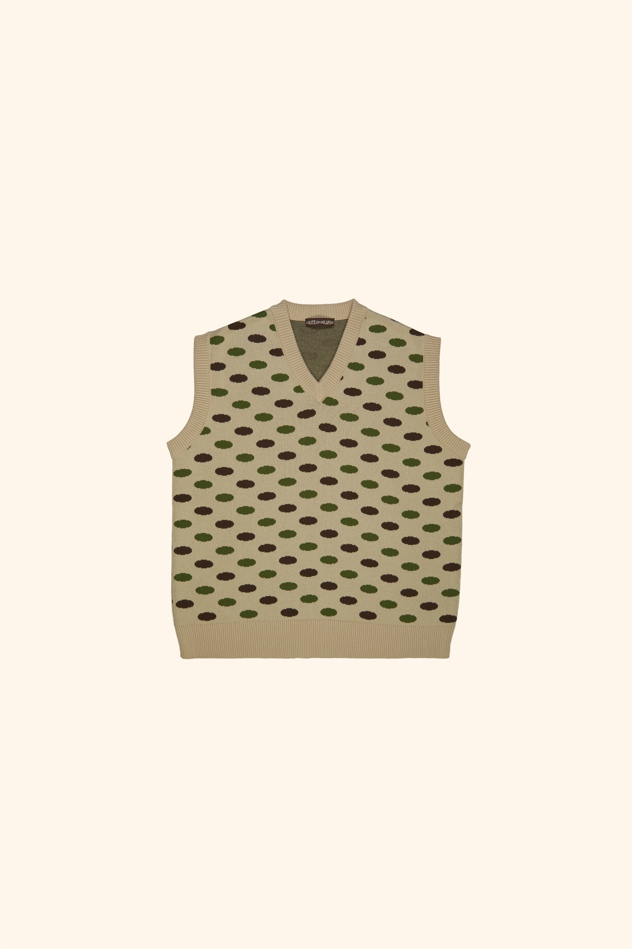 Cotton jacquard V-neck vest with design inspired by an antique wallpaper fragment
