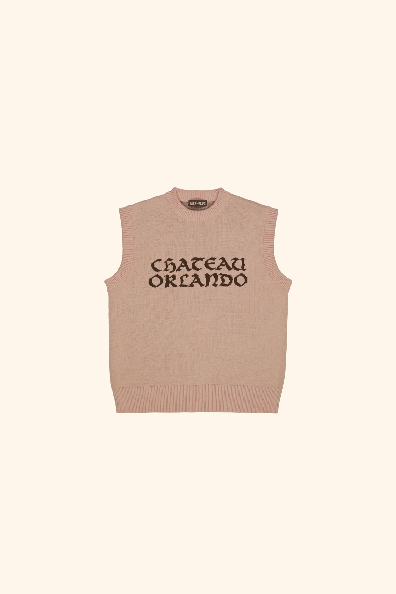 Cotton jacquard crewneck vest with logo design inspired by souvenir sweaters