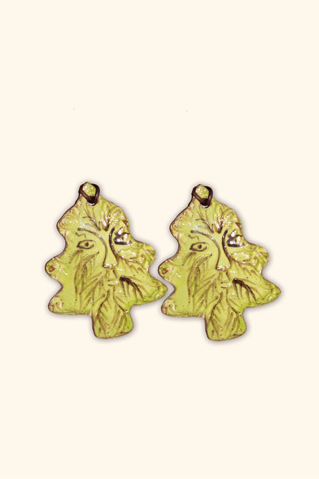 • Set of Two Studio Pottery Green Man Decorations