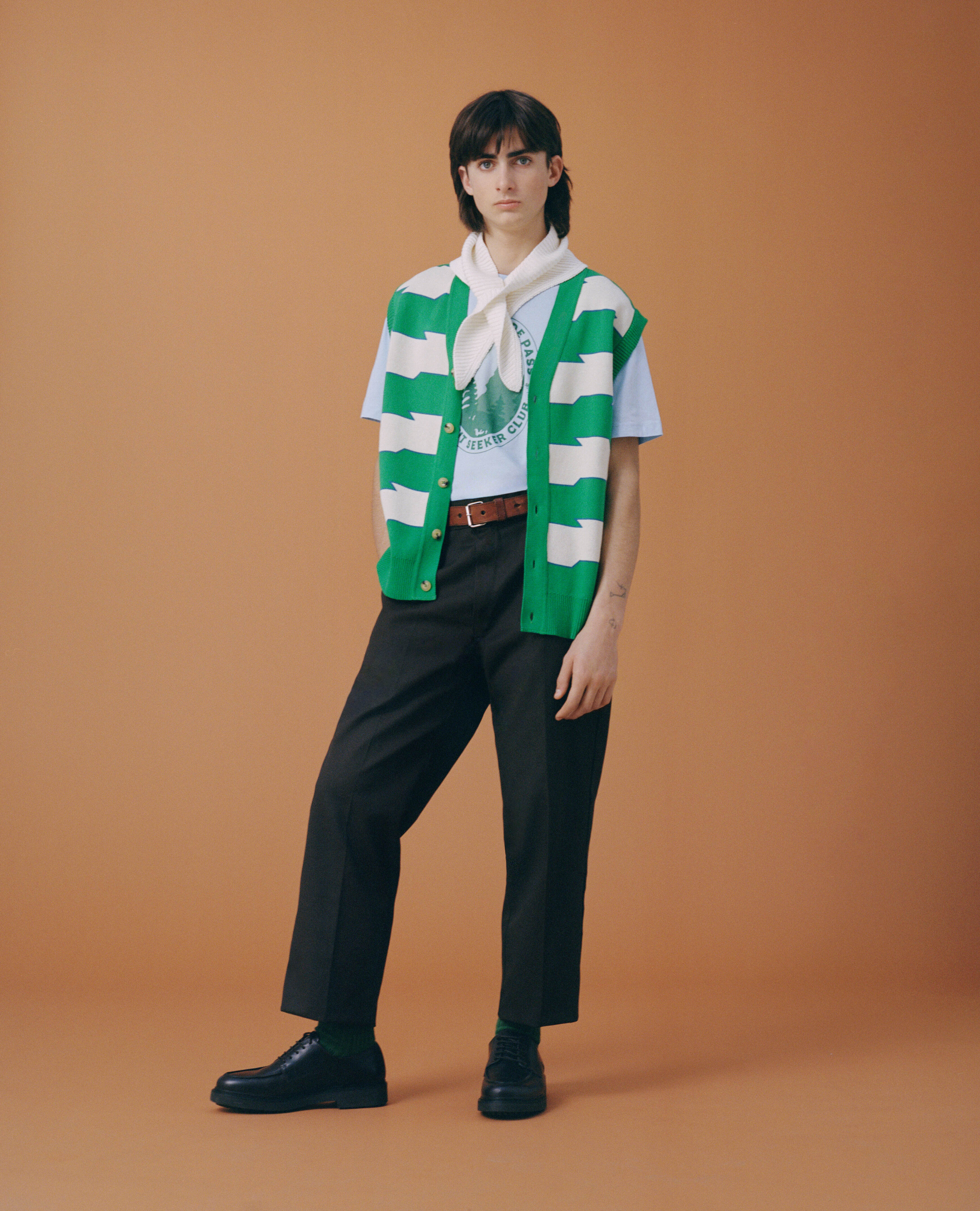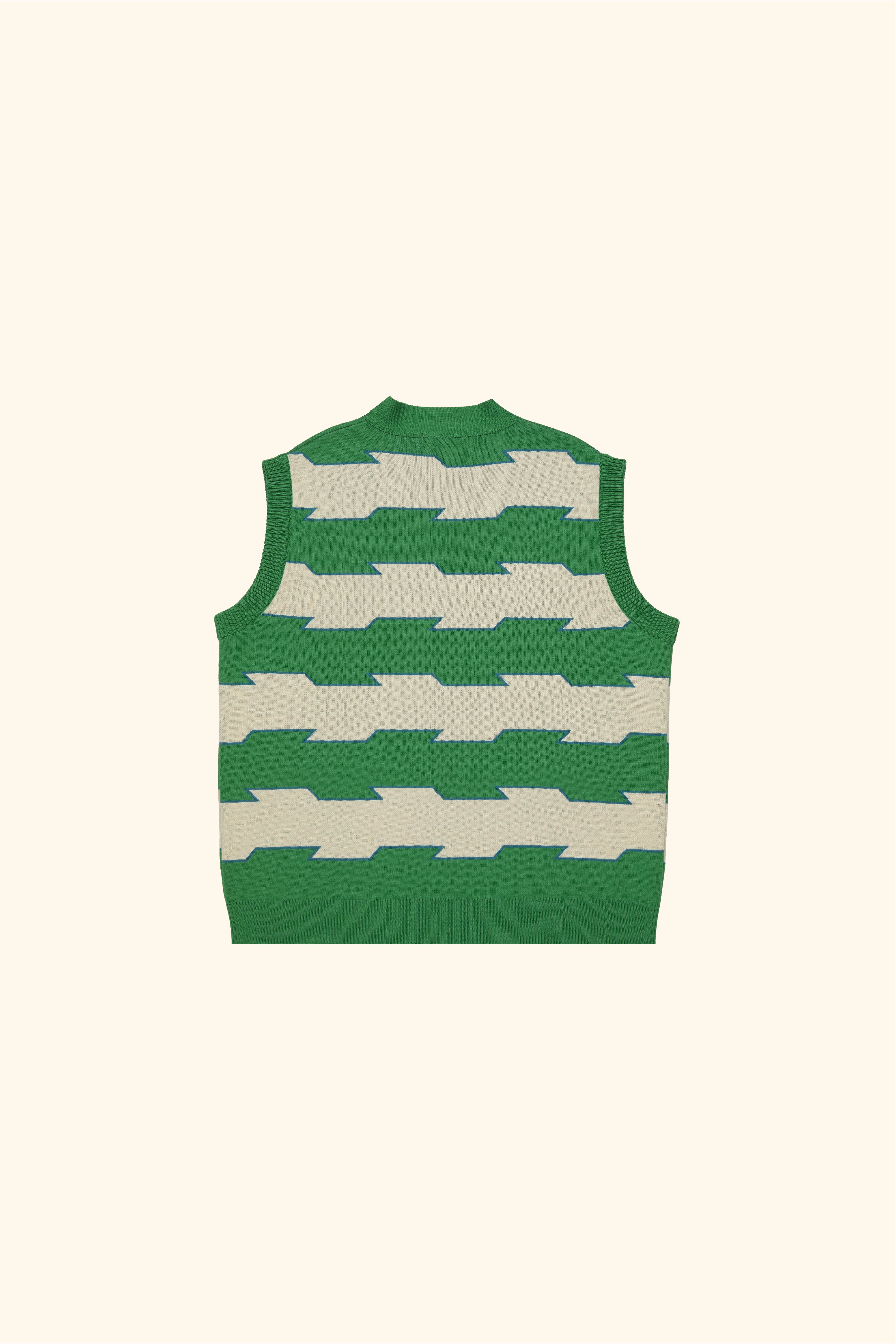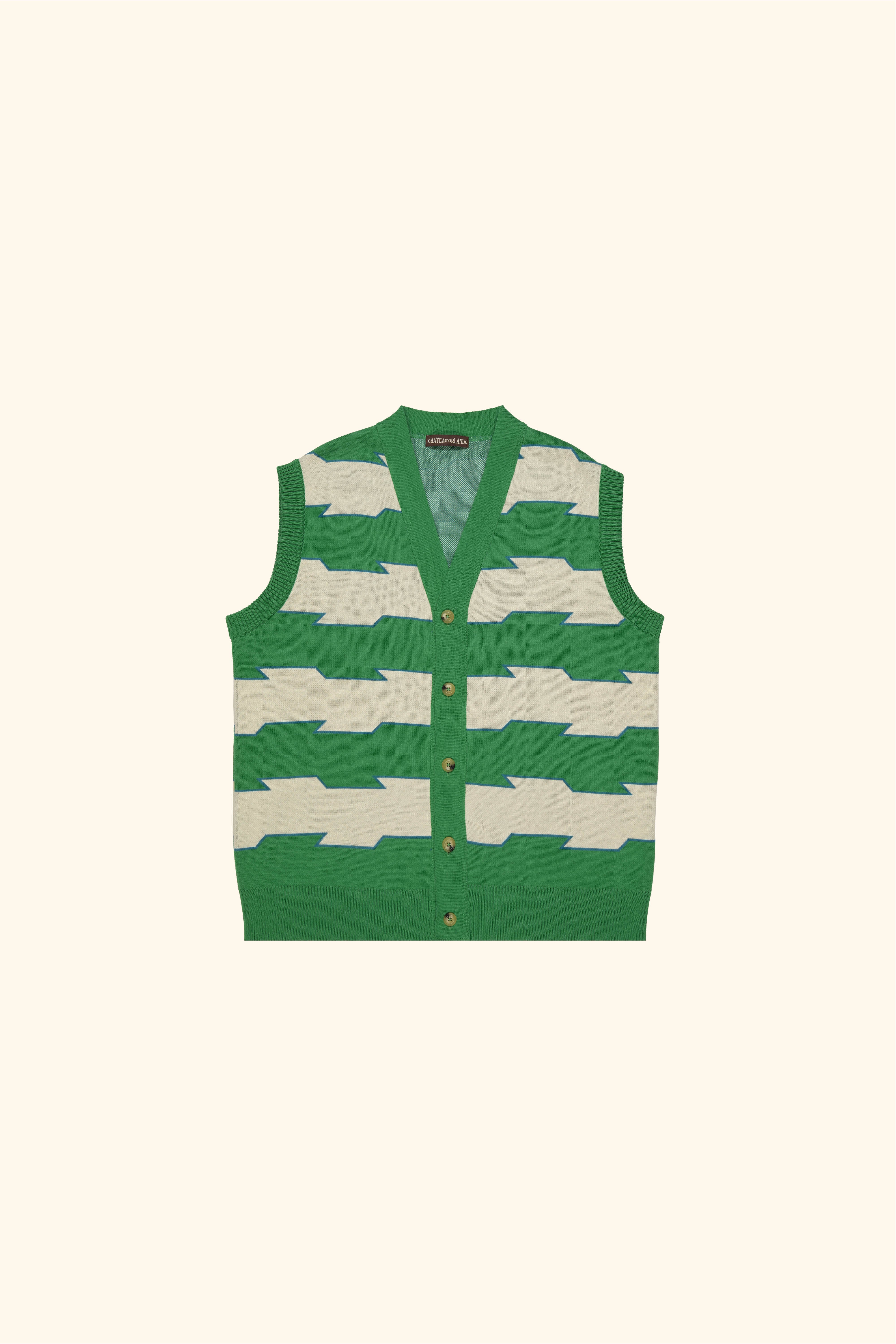 Cotton jacquard vest cardigan with design inspired by Swiss train liveries