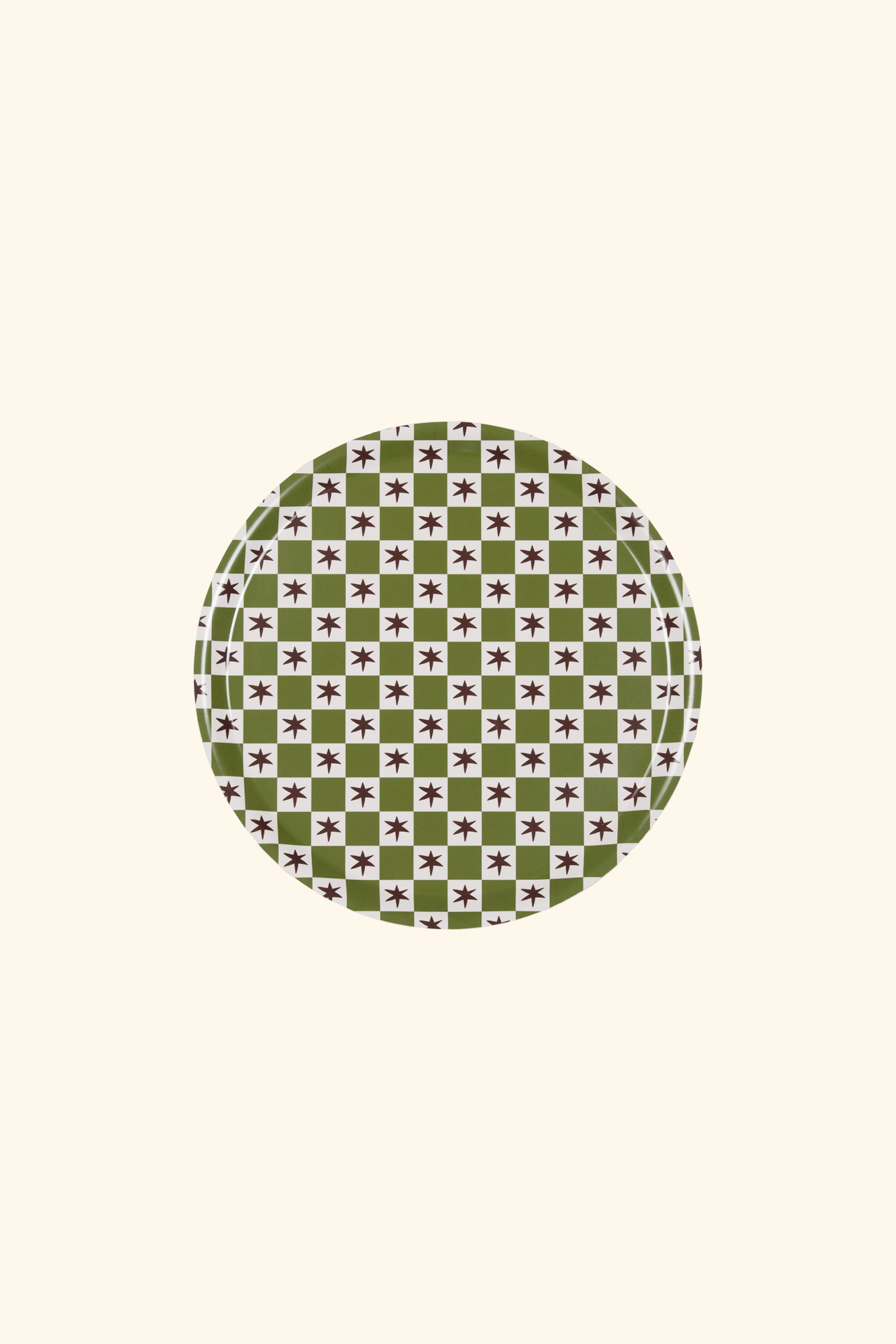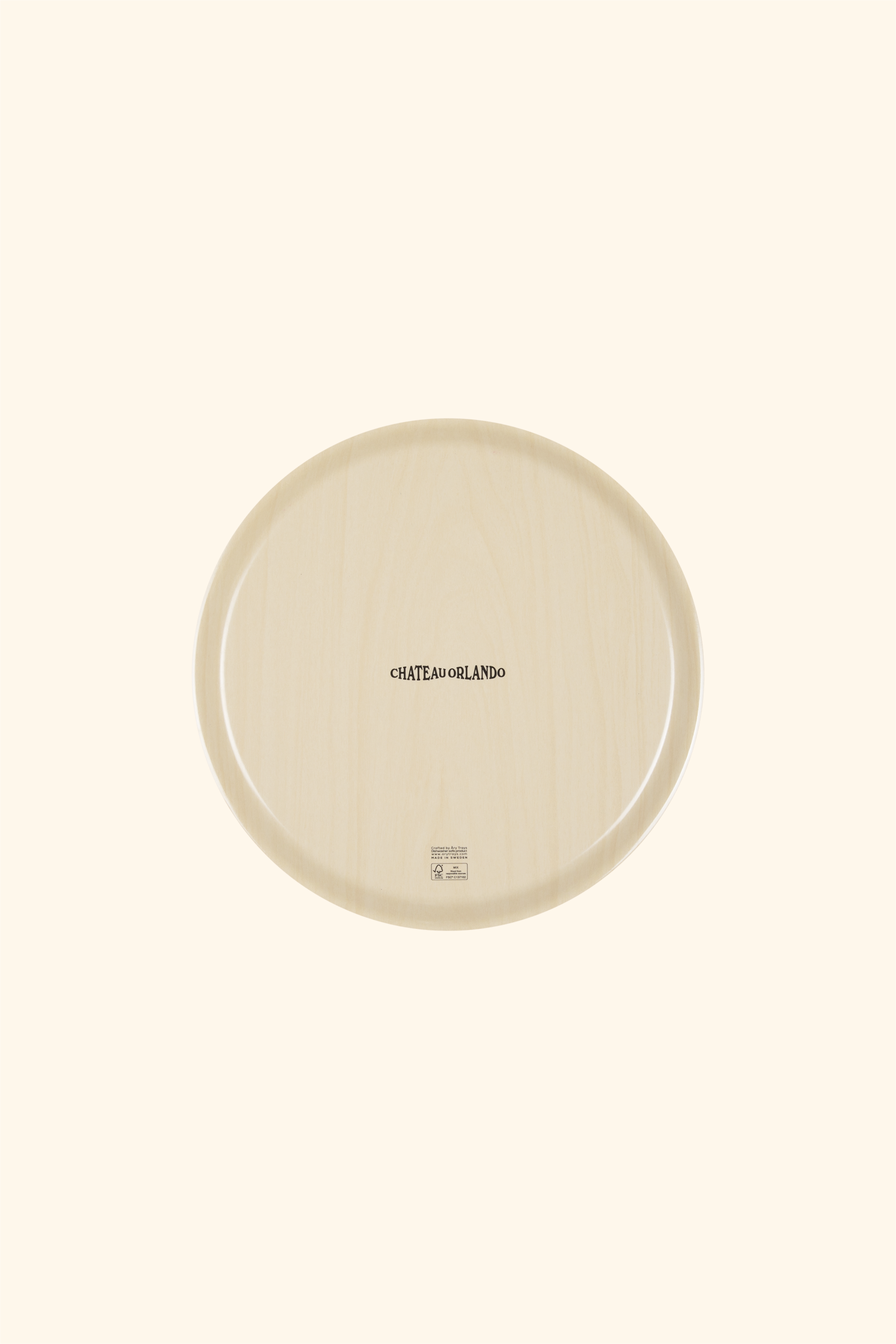 Birch veneer round tray with design inspired by a 20th century ballet costume