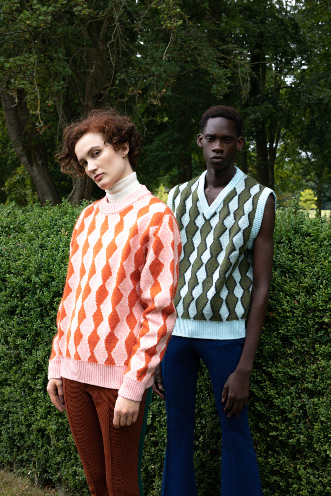 Wool and mohair jacquard crewneck jumper with design inspired by a 20th century ballet costume