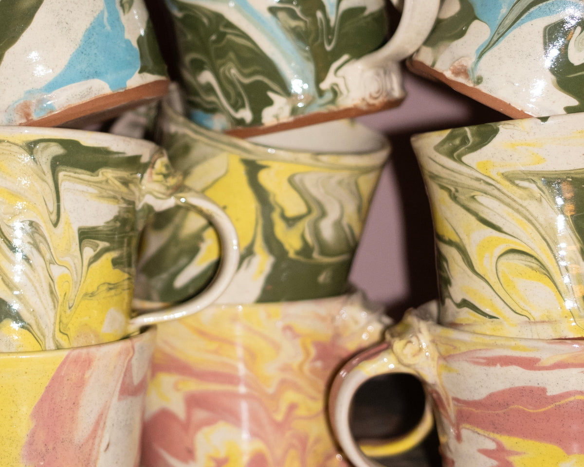 Our earthenware ceramics have been made for Chateau Orlando by Jenny Knight, a Gloucestershire-based studio potter and artist. Each mug and decoration has its design applied directly by hand: every piece is unique.