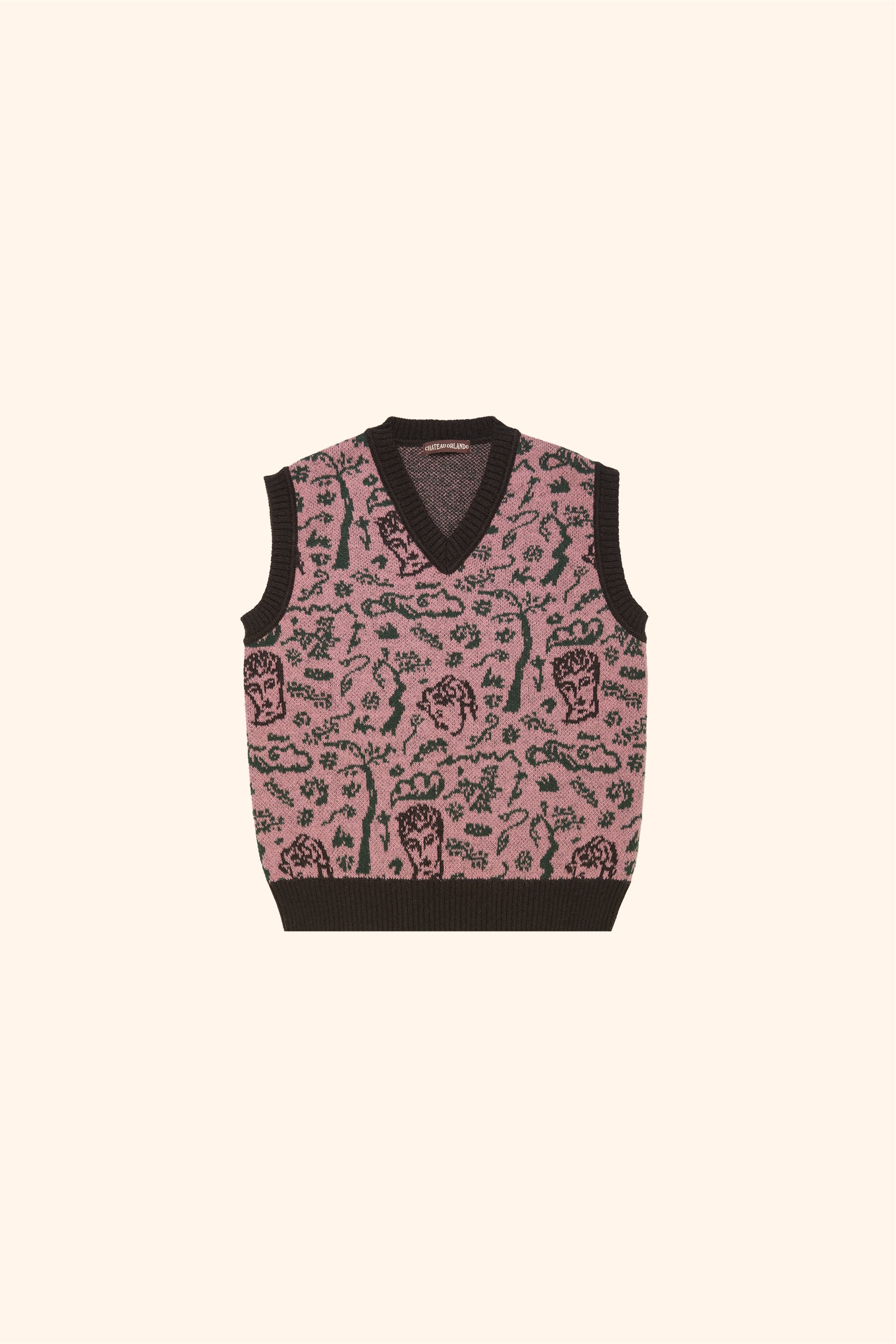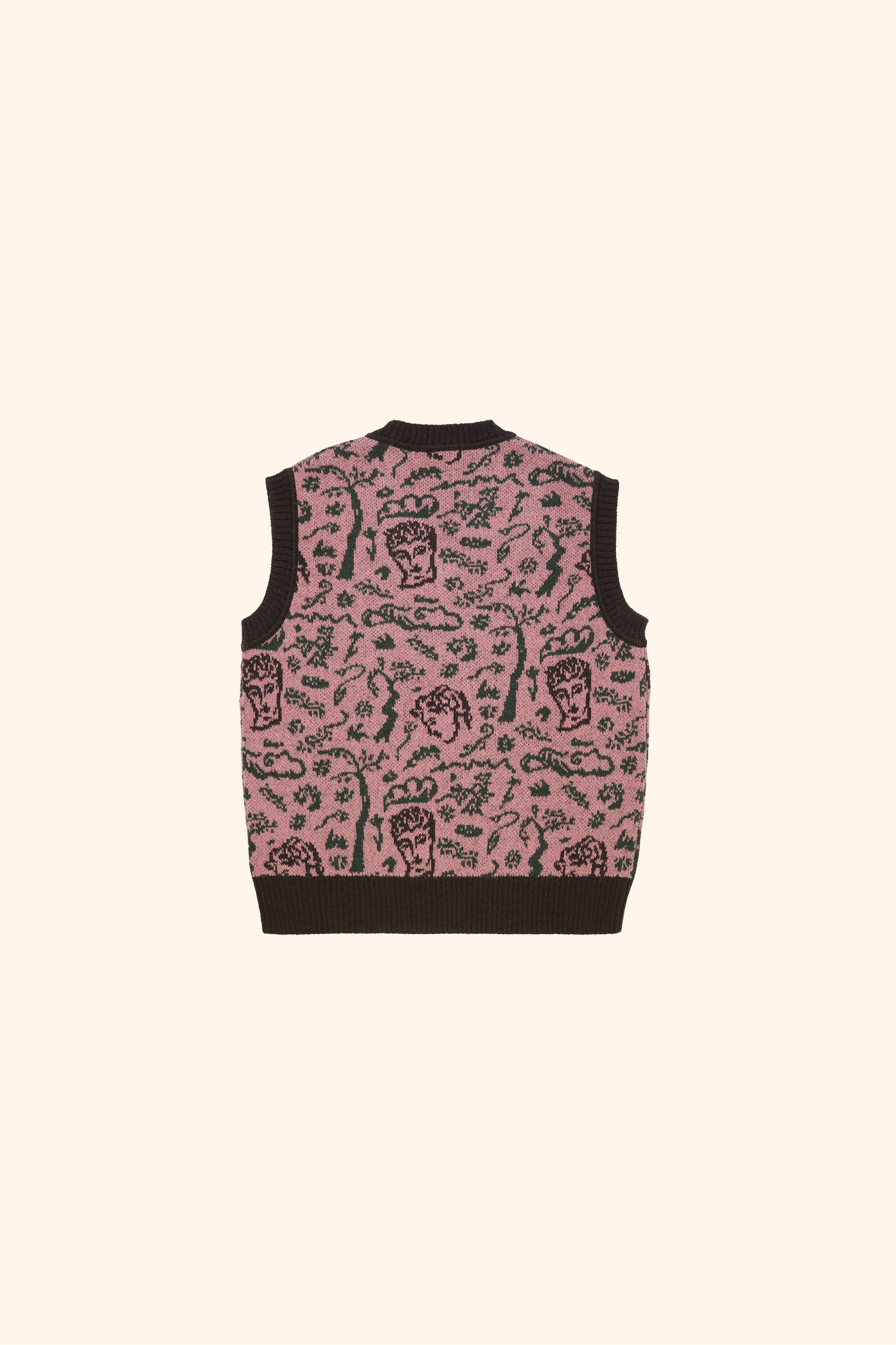 Mohair v-neck vest with twilight woodland design inspired by the poem Endymion by John Keats