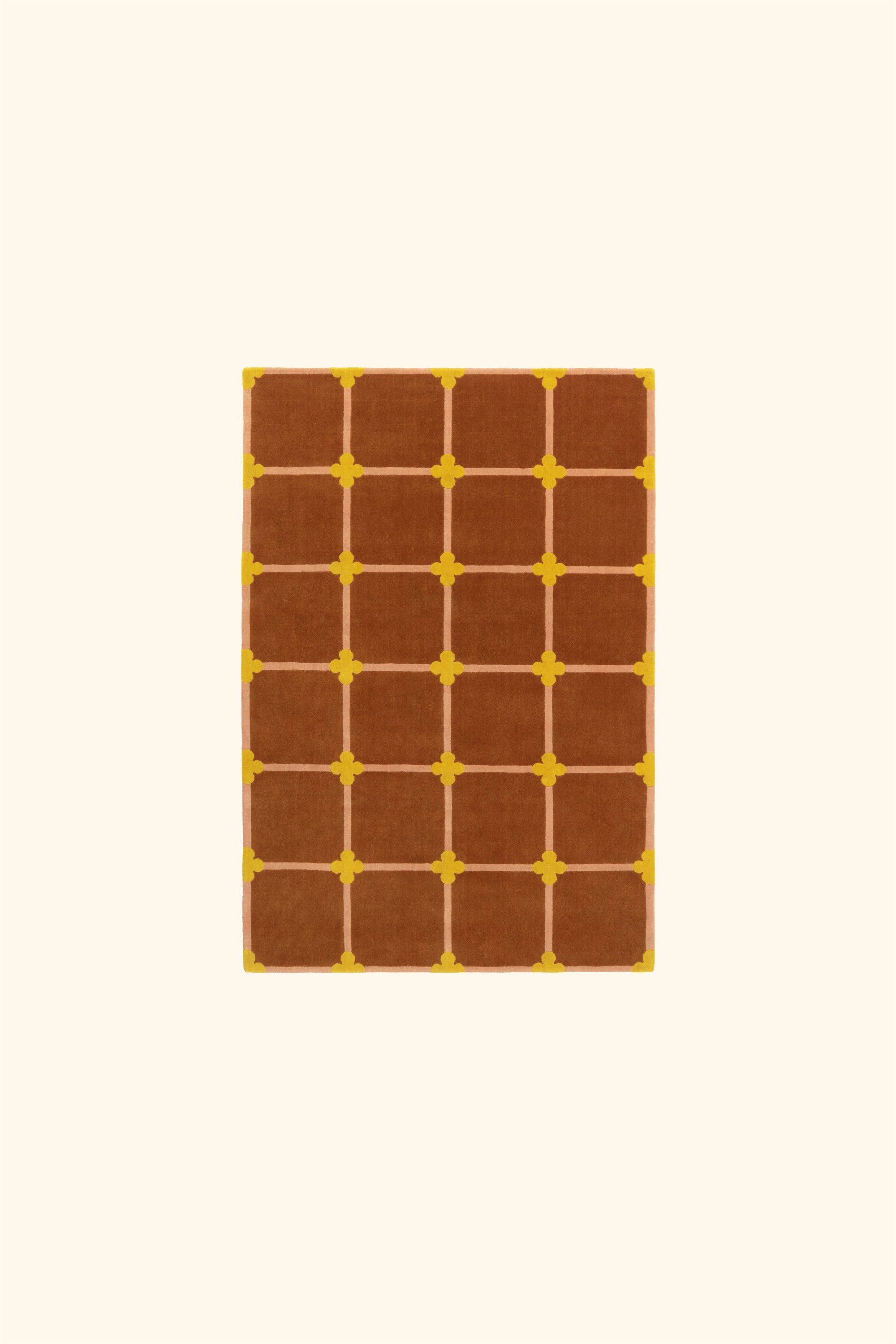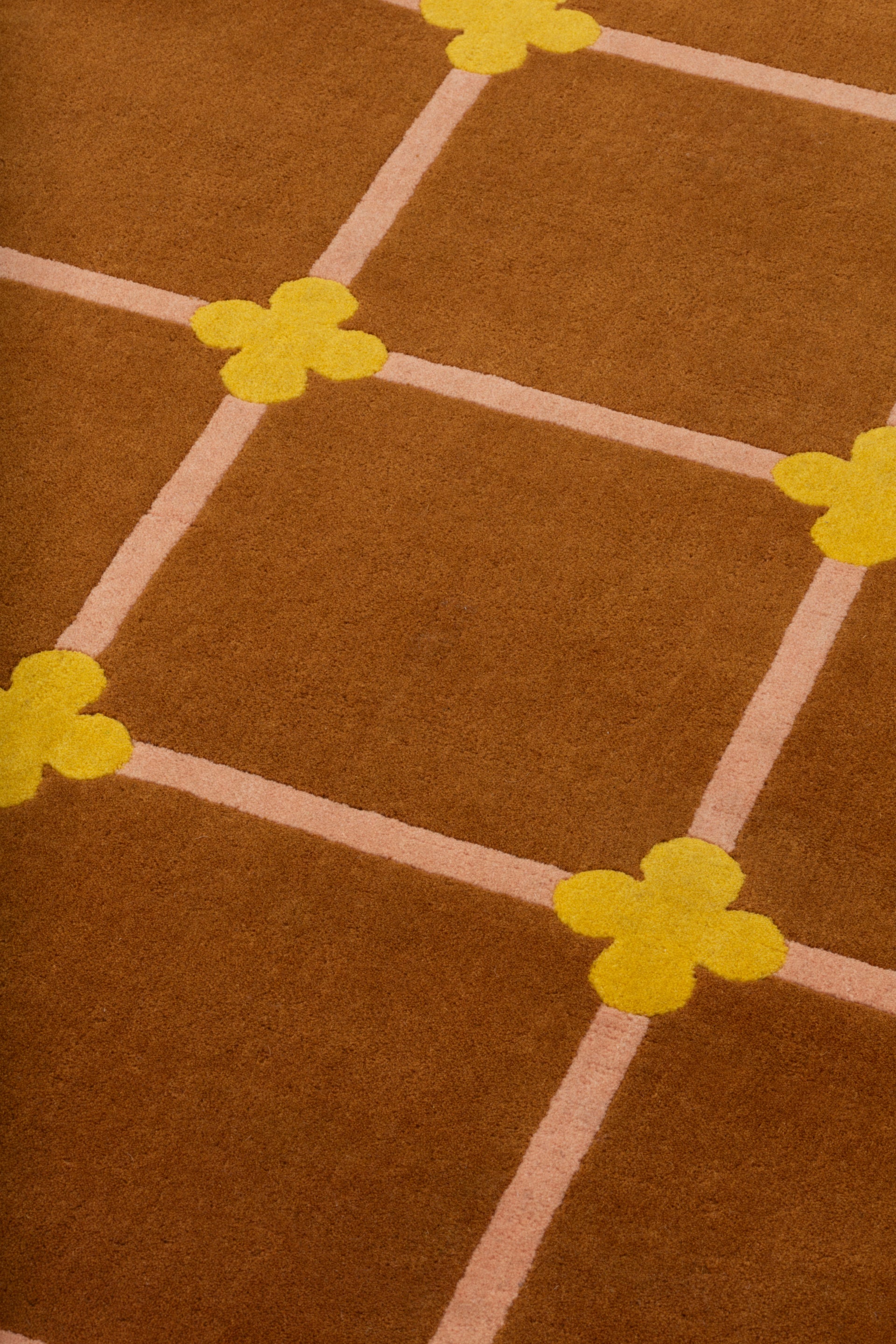Pure wool jacquard rug with design inspired by an original carpet from the 1980s