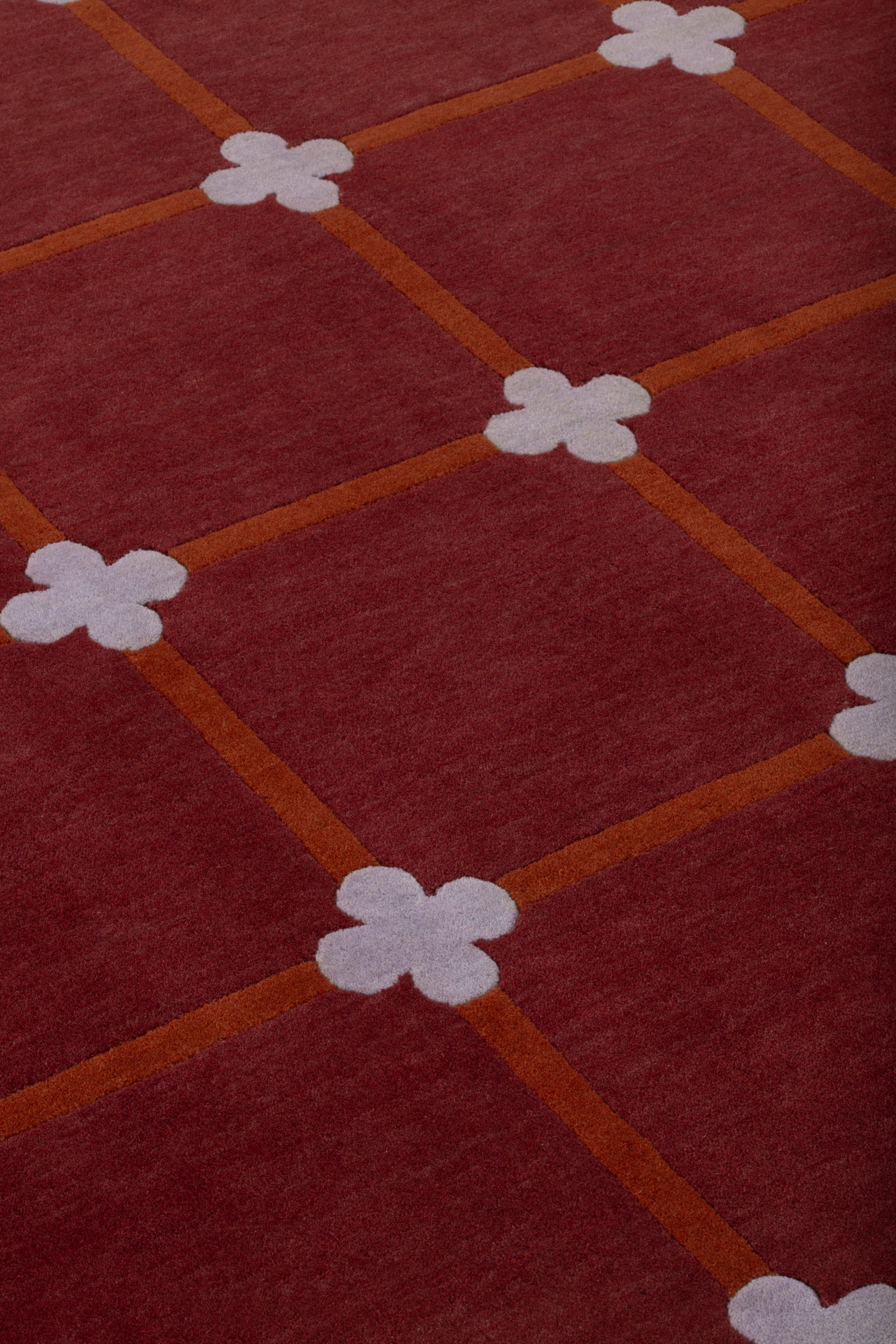 Pure wool jacquard rug with design inspired by an original carpet from the 1980s