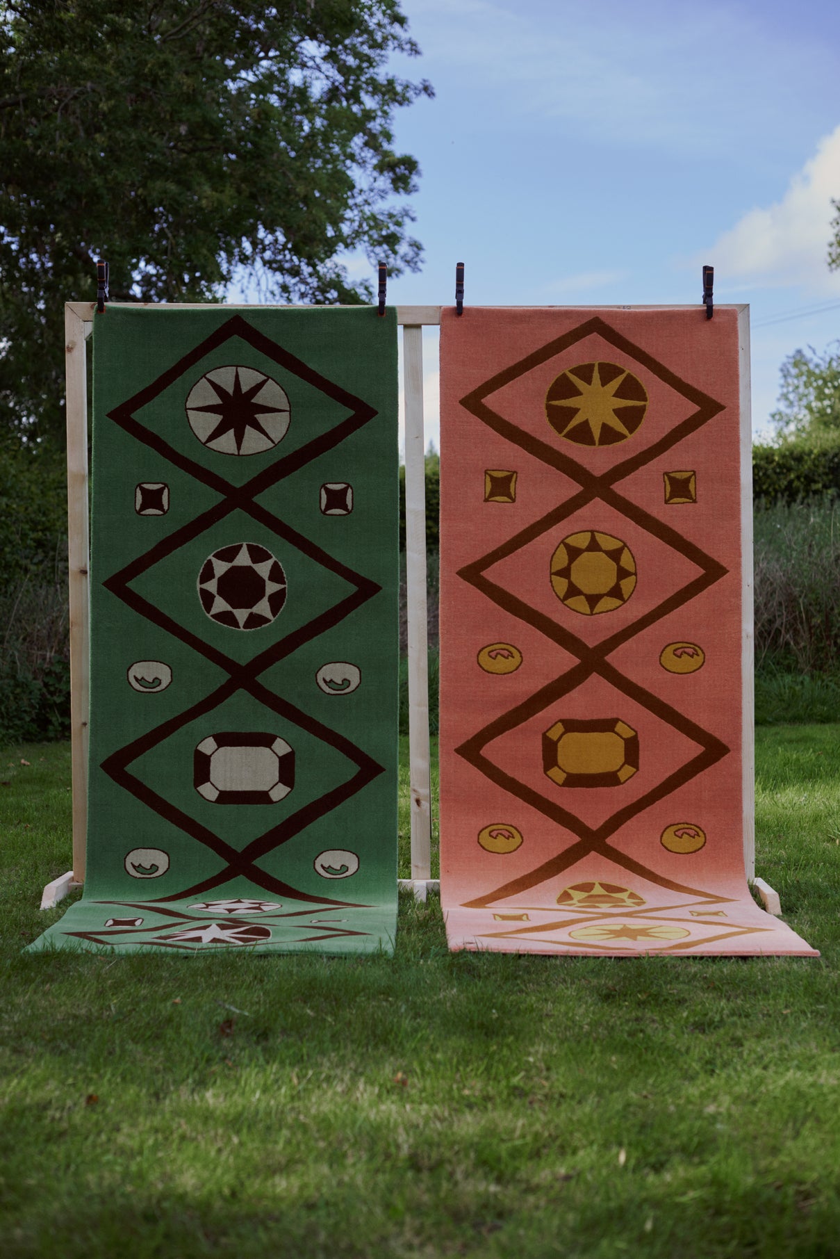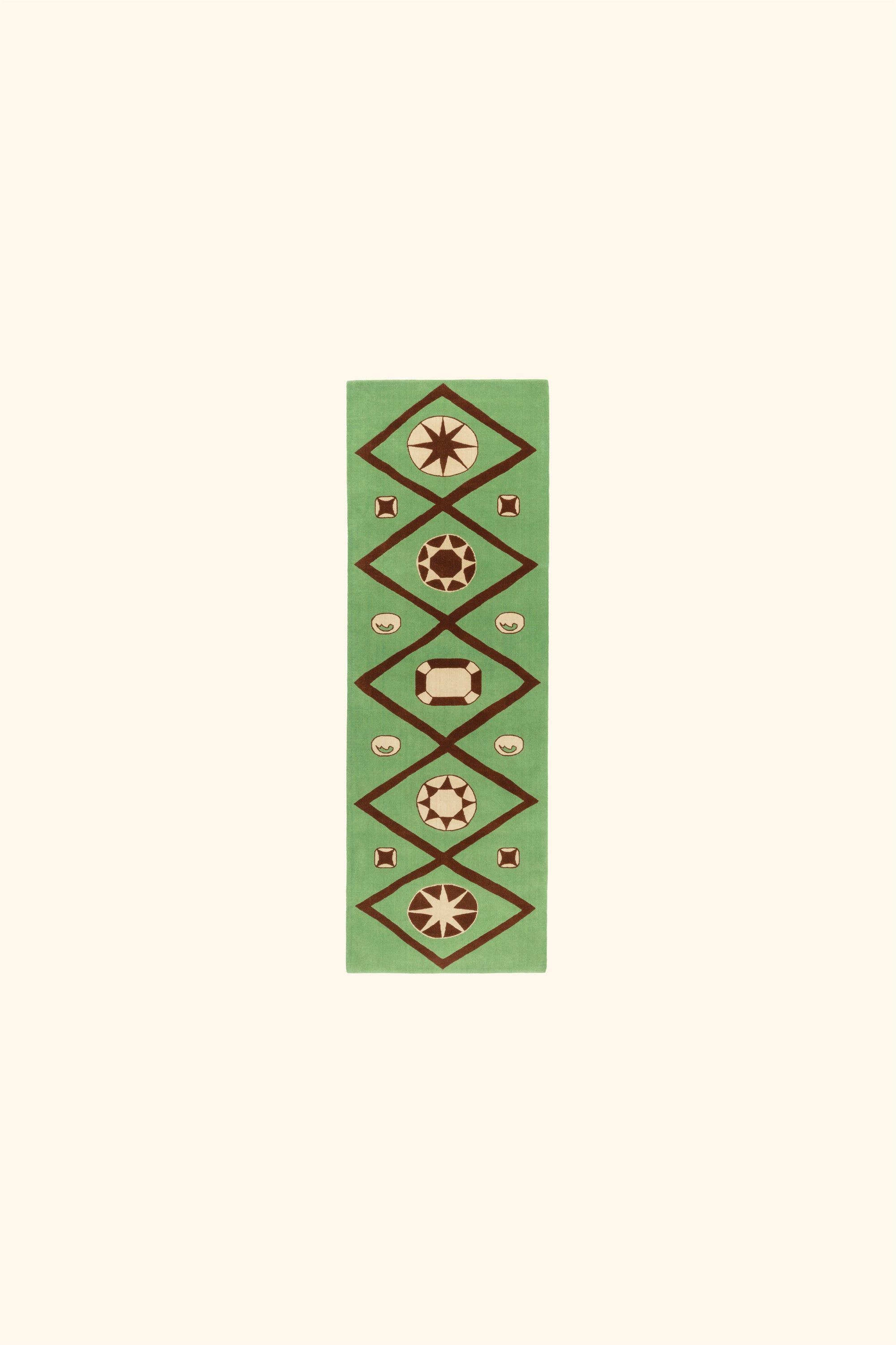 Pure wool jacquard rug with design inspired by 1920s illustrations of jewellery from a museum's collection
