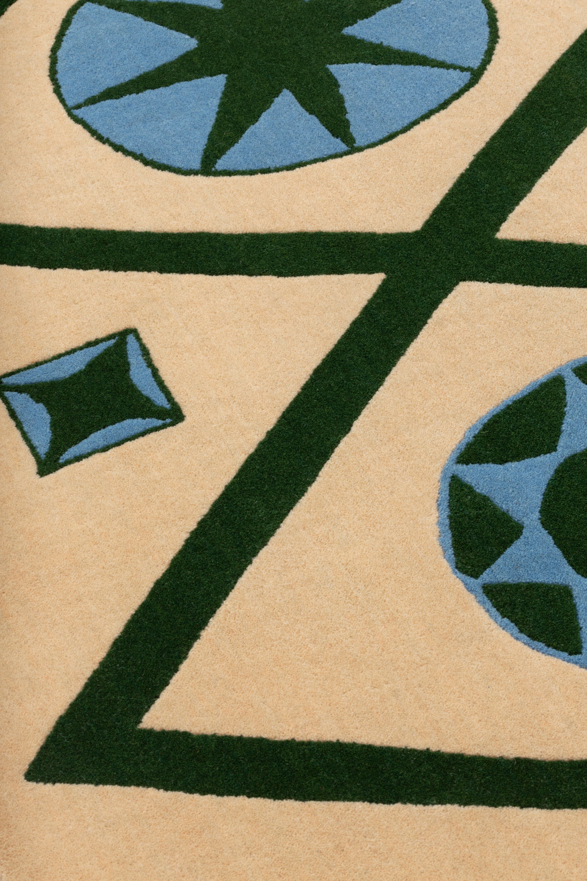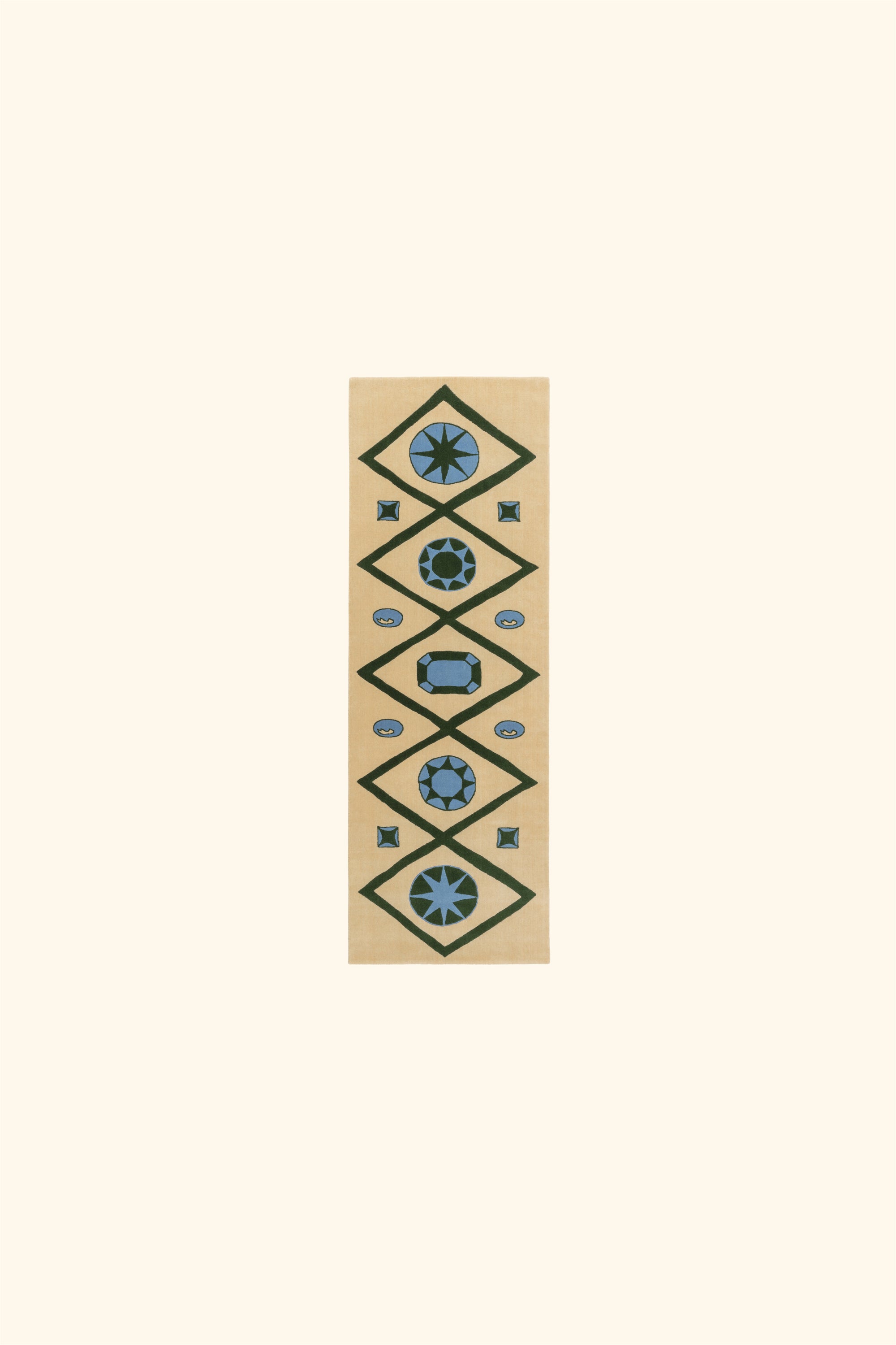 Pure wool jacquard rug with design inspired by 1920s illustrations of jewellery from a museum's collection