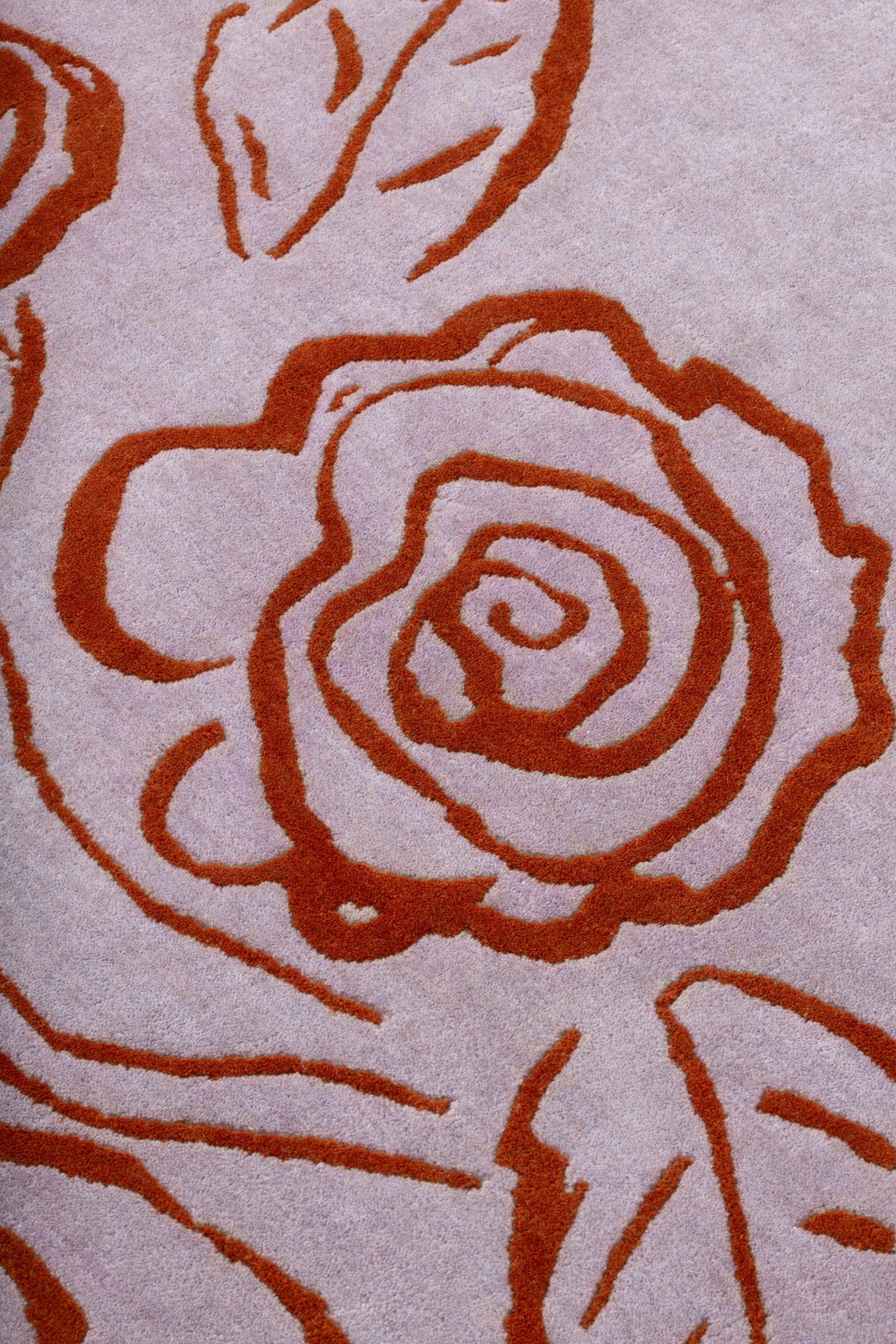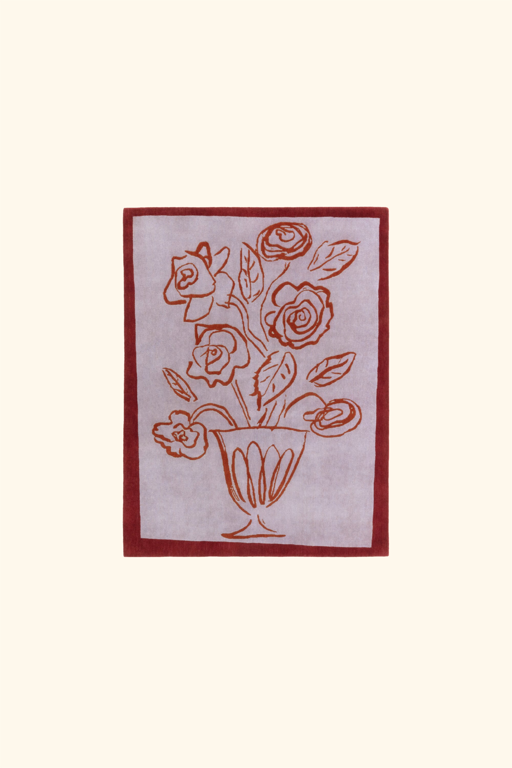Pure wool jacquard rug featuring an urn of flowers loosely sketched by Luke, inspired by the roses he grows in his country garden